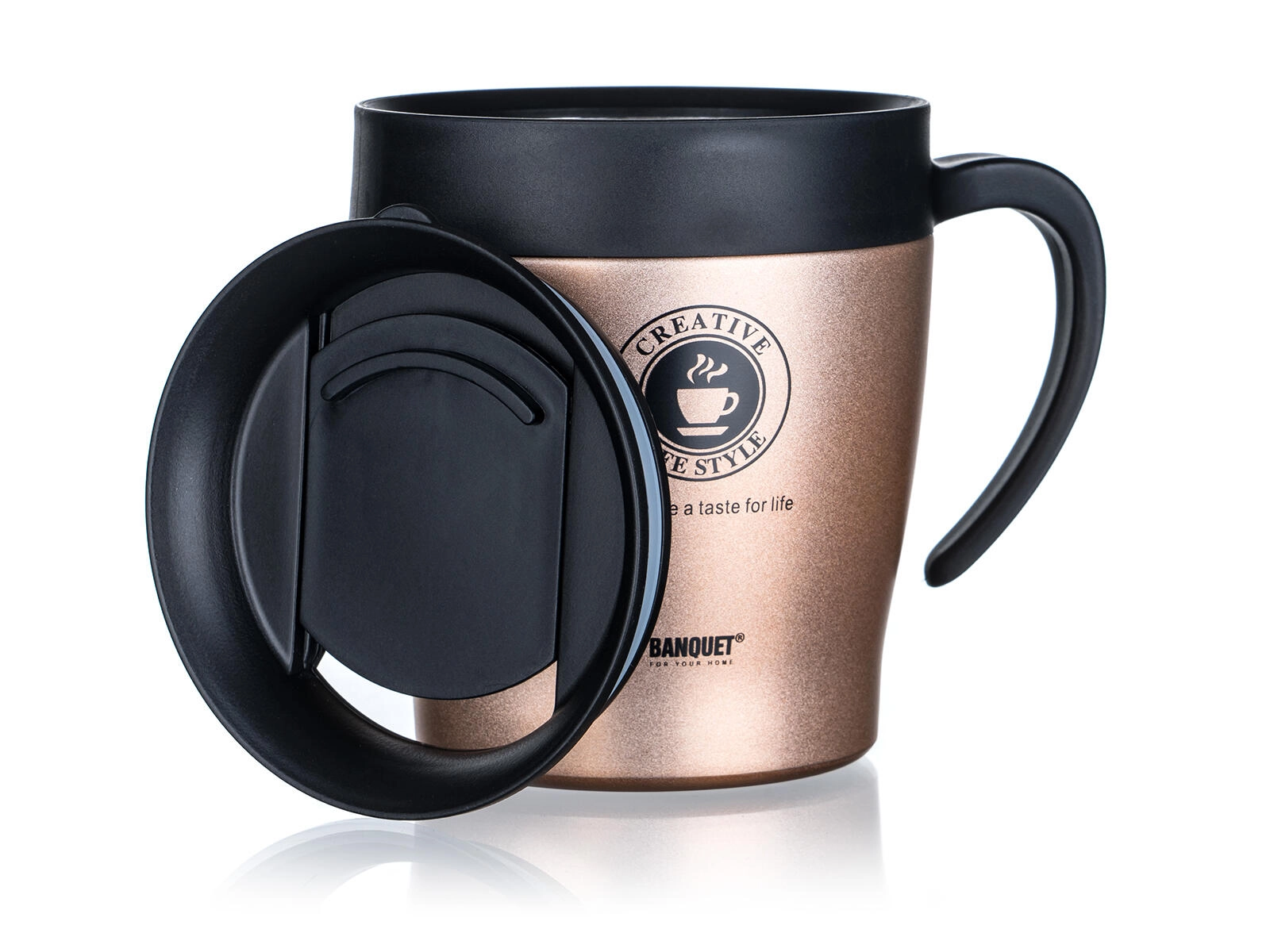 Design w brązowej metalice prezentuje się elegancko, a dzięki wygodnemu uchu kubek dobrze leży w dłoni. Z pojemnością 330 ml doskonale sprawdzi się w biurze, aucie i w podróży. Dla maksymalnego komfortu zalecamy transport w pozycji pionowej – pokrywka nie jest całkowicie szczelna.