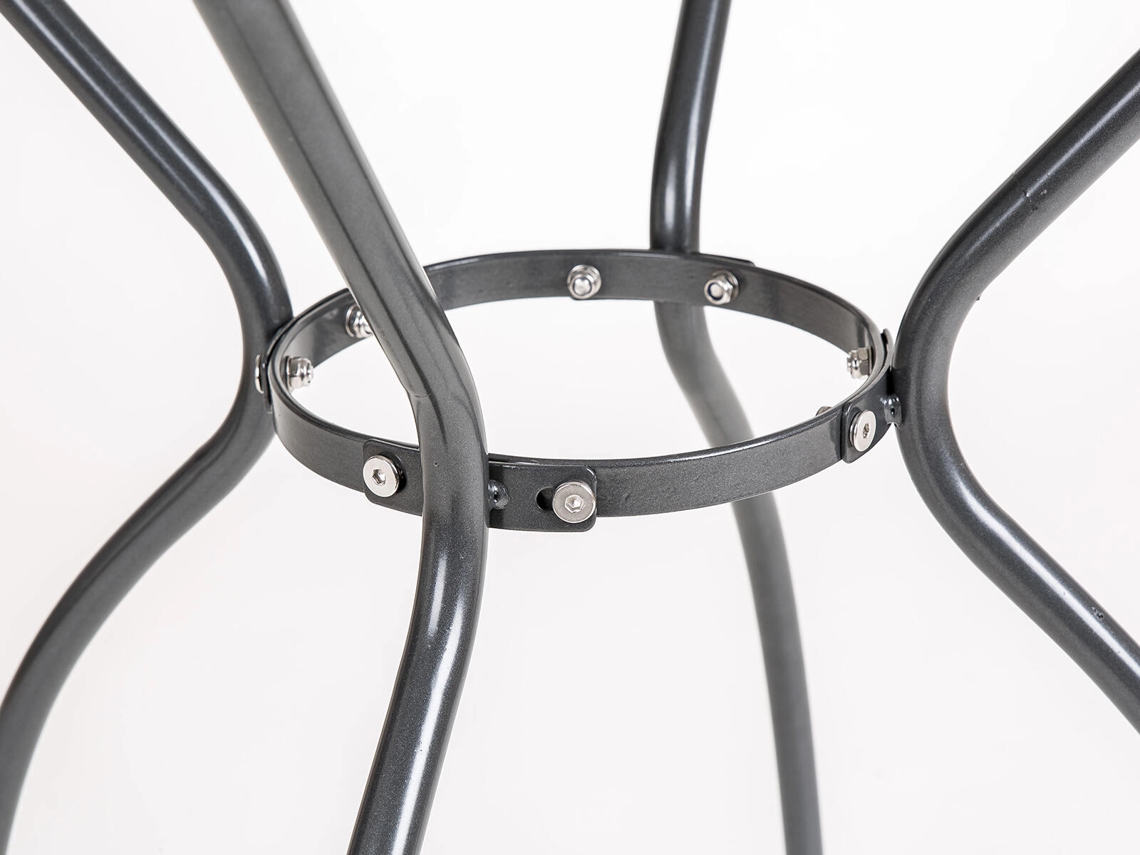 Solidna rama z okrągłym wzmocnieniem między nogami zapewnia doskonałą stabilność i długą żywotność, nawet przy częstym użytkowaniu na zewnątrz.
