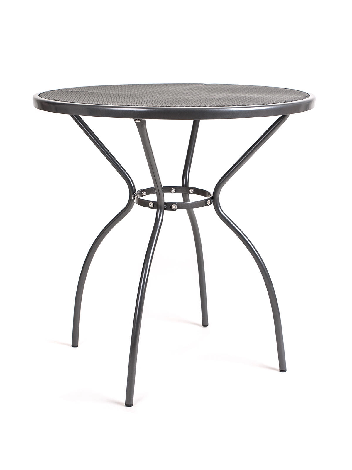 Perforowany (siatkowany) blat umożliwia szybki odpływ wody i łatwe czyszczenie, natomiast solidne nogi rurowe z dolnymi nakładkami pomagają chronić powierzchnie i zwiększają stabilność. Stół sprawdzi się jako stolik bistro, pomocniczy oraz mniejszy stół jadalniany do siedzenia na świeżym powietrzu.