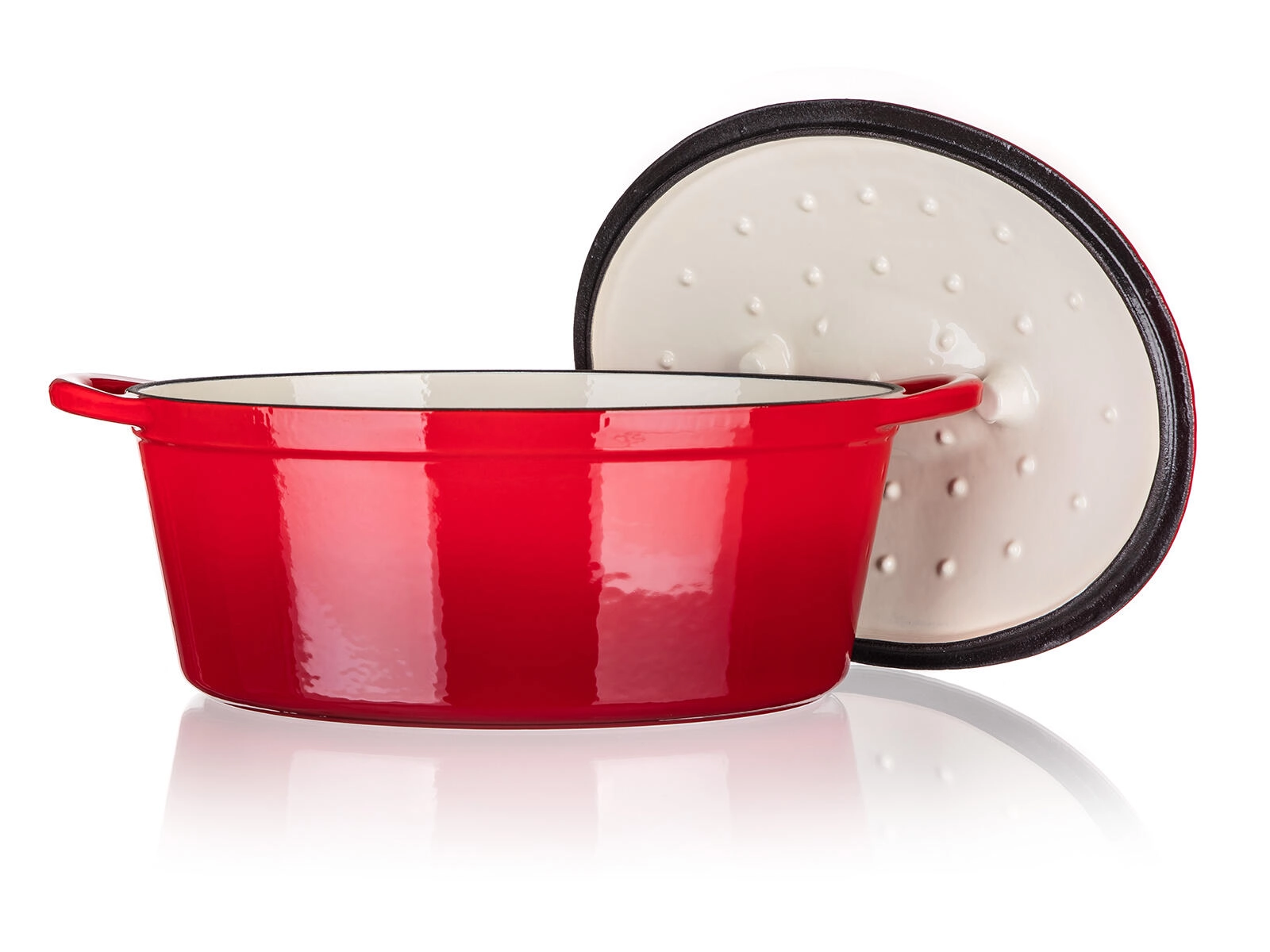 - Owalna żeliwna brytfanna z pokrywą