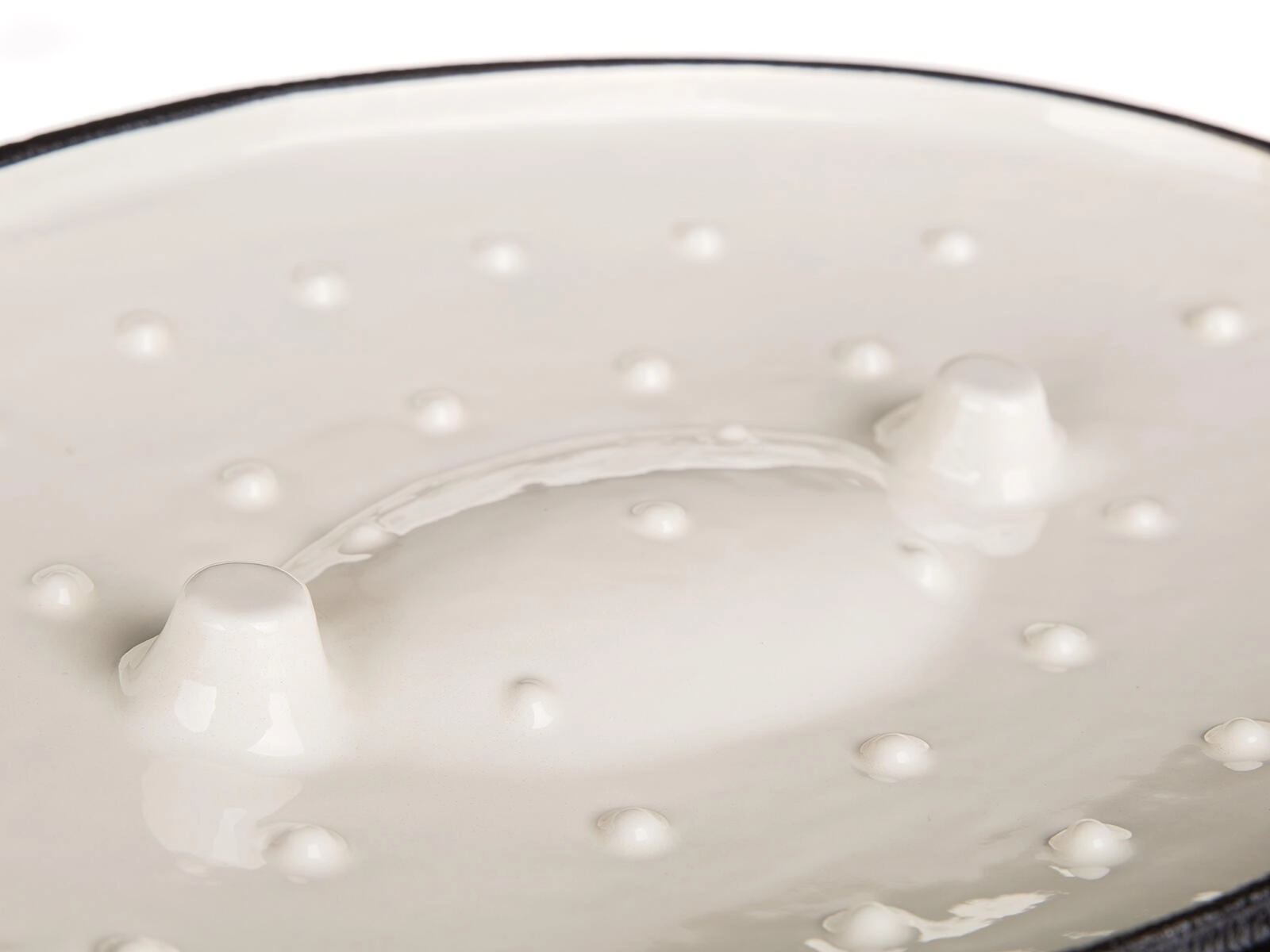 Wypustki po wewnętrznej stronie pokrywy rozprowadzają skroploną parę z powrotem do brytfanny. Danie pozostaje wilgotne i się nie przypala.