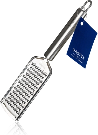 Prosty i funkcjonalny design z linii GASTEX gwarantuje ponadczasowy wygląd oraz długą żywotność użytkową i jakościową. Dzięki oczku do zawieszenia przechowywanie jest łatwe, a kuchnia pozostaje uporządkowana. Konserwacja jest bezproblemowa – tarkę można myć w zmywarce.