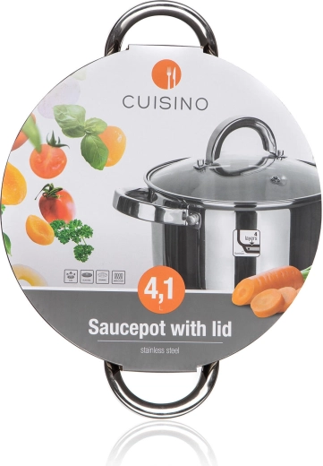 Garnek nierdzewny CUISINO o pojemności 4,1 l to świetny wybór do zup, sosów i dodatków. Dzięki szklanej pokrywce masz pełną kontrolę nad gotowaniem, a błyszcząca powierzchnia nadaje naczyniu elegancki wygląd. Wewnętrzna podziałka pojemności ułatwia dokładne odmierzanie płynów.