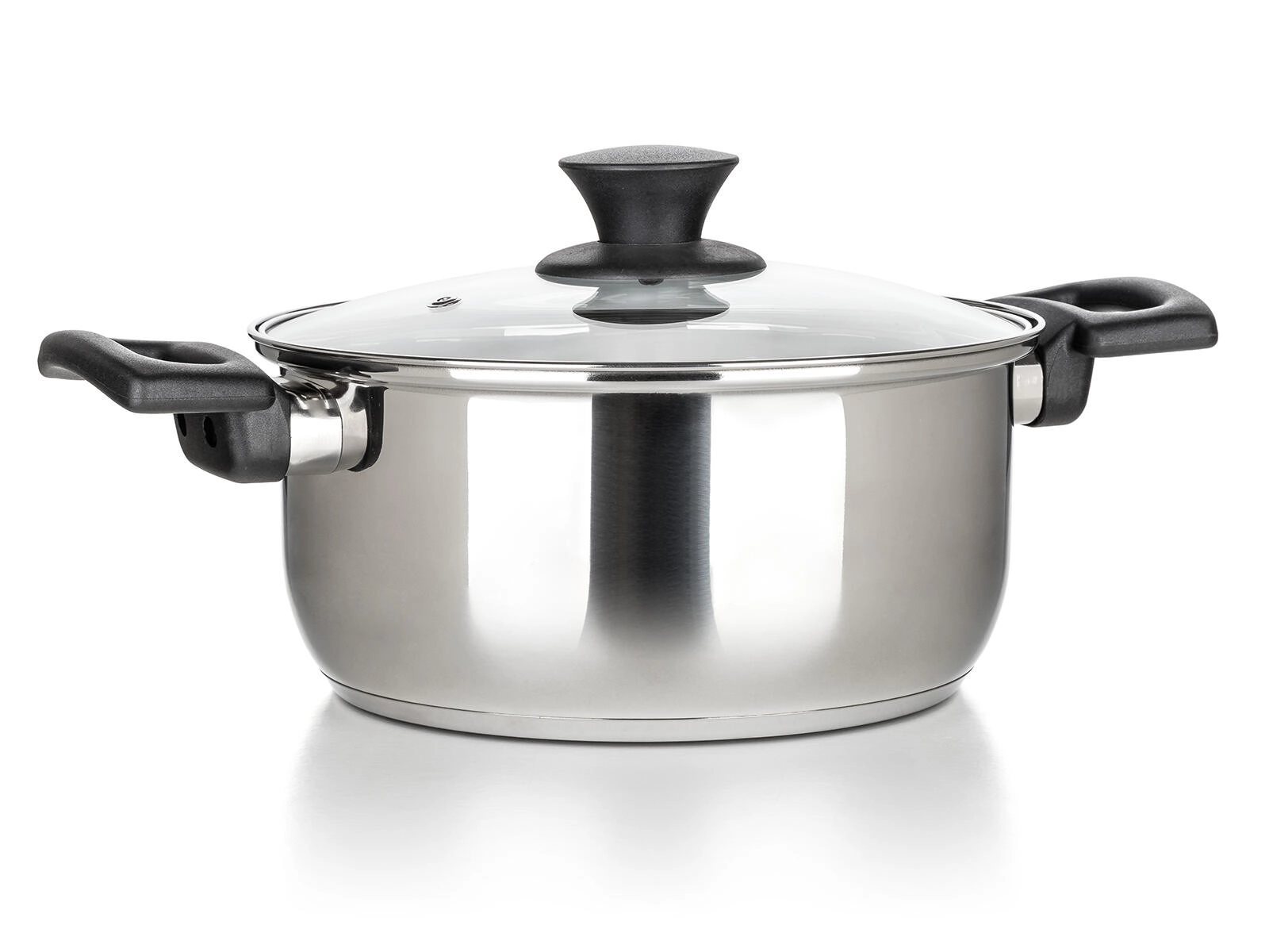 Polerowana stal nierdzewna wewnątrz i na zewnątrz jest higieniczna, odporna na korozję i odpowiednia do zmywarki. Dno o grubości 2,76 mm zapewnia stabilne rozprowadzanie ciepła.