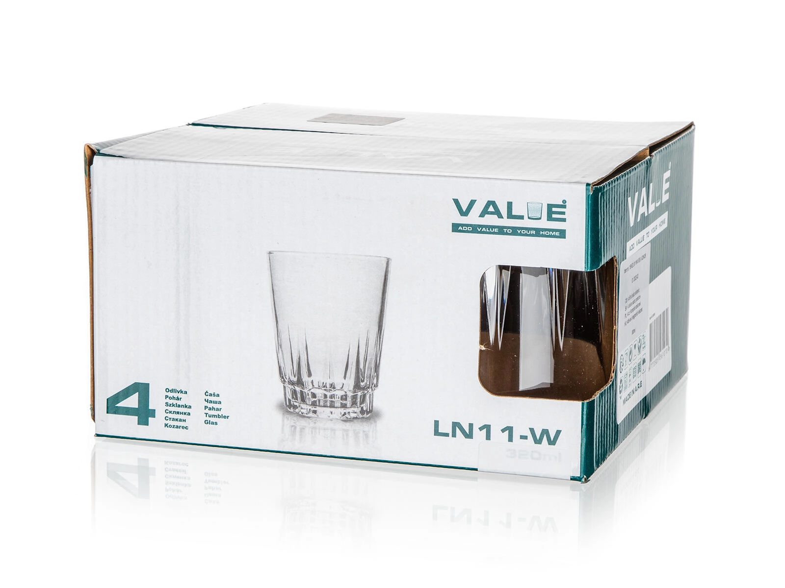 Elegancki zestaw czterech szklanek VALUE o pojemności 300 ml do codziennego użytku i uroczystych chwil. Szklanki z odpornym, grubym dnem, fazowanym wzornictwem i wygodnym uchwytem świetnie sprawdzą się do wody, soku i whisky. Dostarczane w ozdobnym opakowaniu prezentowym.