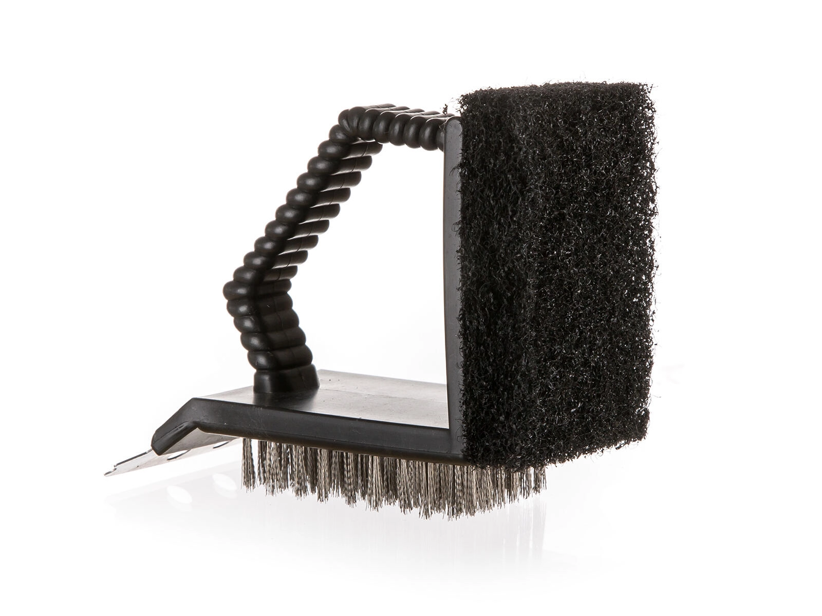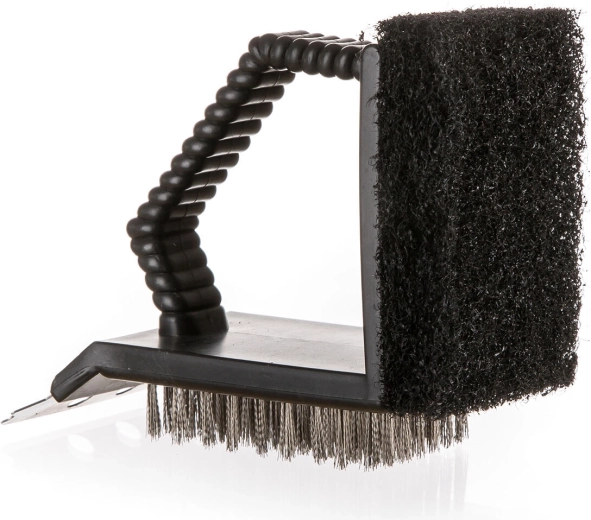 Ten uniwersalny czyścik 3 w 1 jest idealny do regularnej konserwacji grilla. Dzięki połączeniu trzech narzędzi w jednym efektywnie usuniesz przypalenia, tłuszcz oraz drobne resztki bez zbędnego wysiłku. Ergonomiczna plastikowa rączka zapewnia wygodny i pewny chwyt.