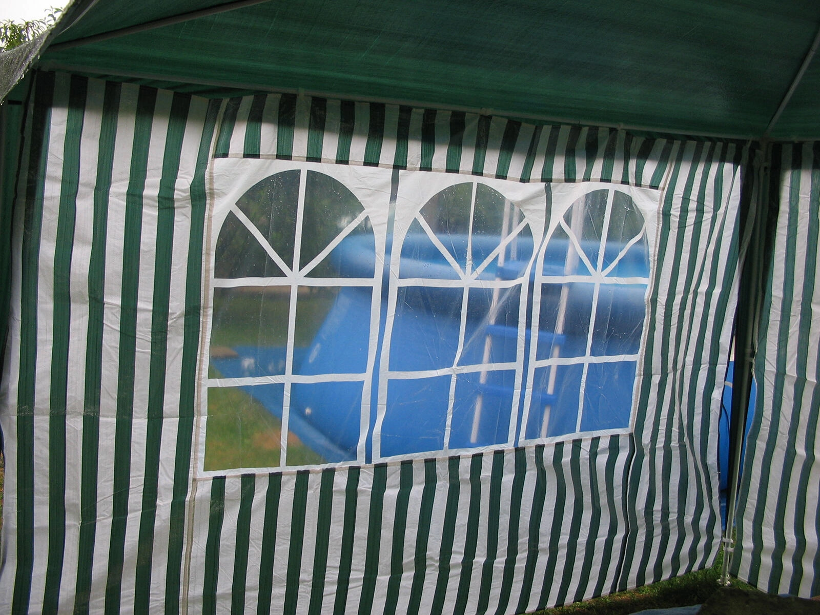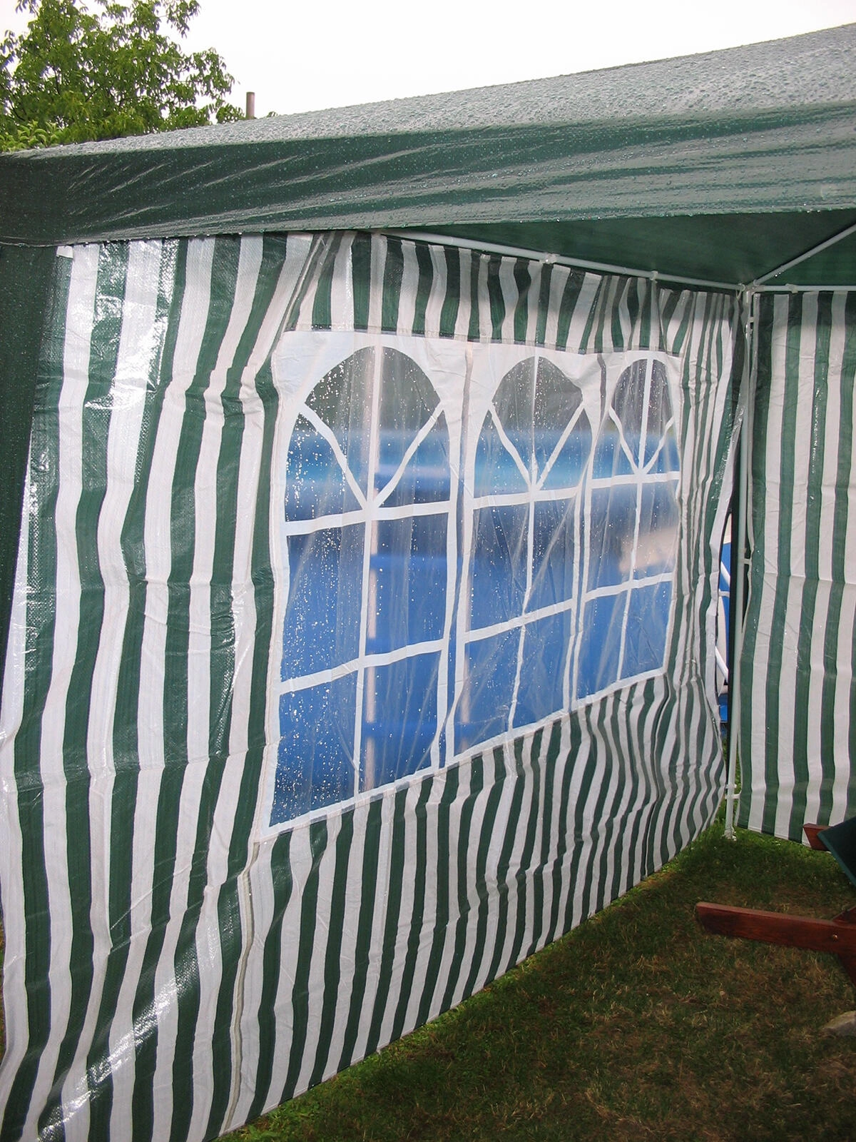 Ta uniwersalna ścianka boczna z oknami szybko zamieni Twoją altanę lub namiot imprezowy w wygodne schronienie dla gości. Przezroczyste, łukowe panele gwarantują naturalne oświetlenie i przyjemną atmosferę, a wytrzymała tkanina PE chroni przed wiatrem, słońcem i lekkim deszczem.