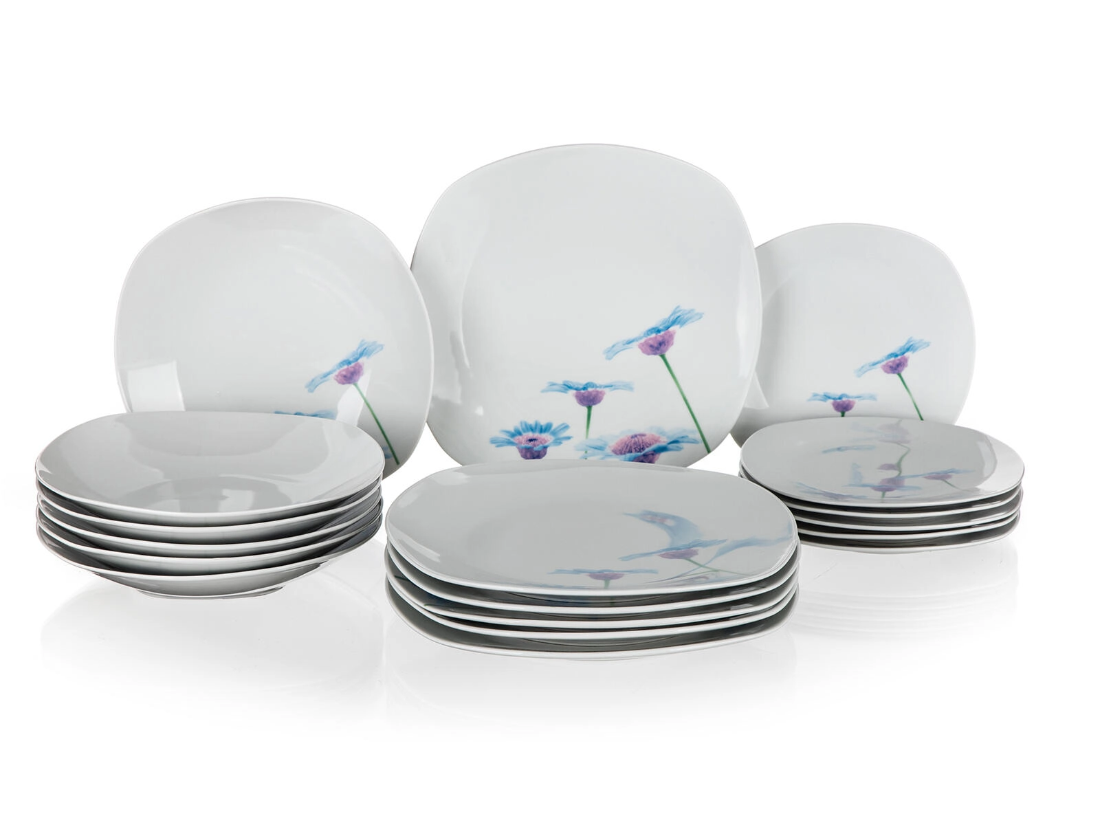 Porcelanowy zestaw obiadowy Blue Daisy, kwadratowy, 18‑częściowy