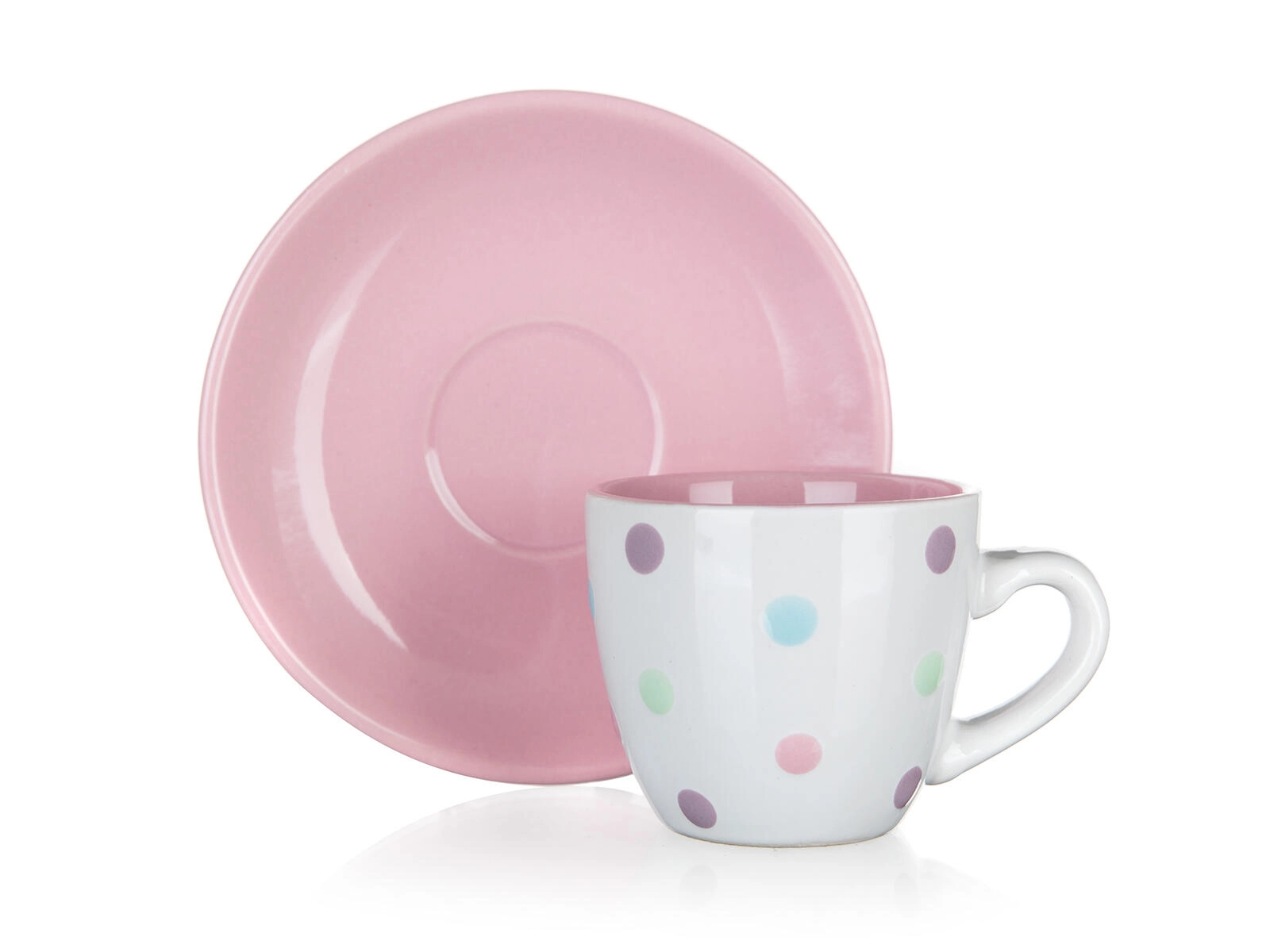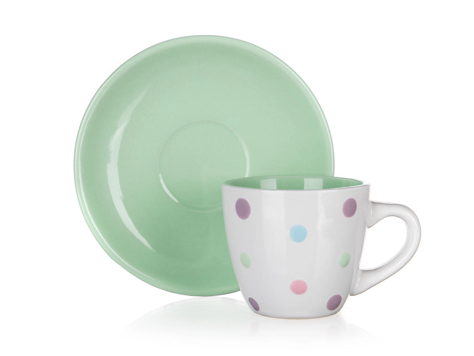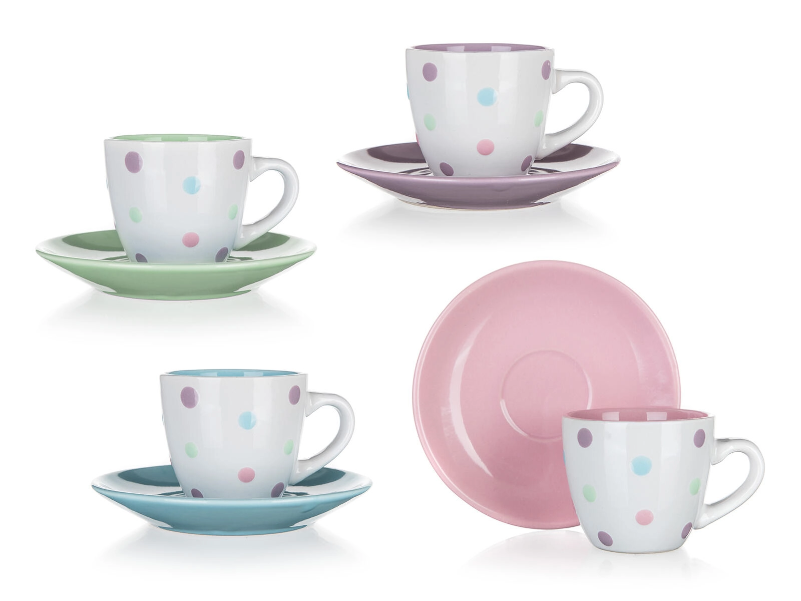Zabawne pastelowe kolory z wzorem w kropki i dopasowanym spodkiem dodadzą Twojej domowej kawiarni wyjątkowego uroku. Łatwa pielęgnacja i trwałe wykonanie czynią z PUNTO praktyczny dodatek do każdej kuchni.