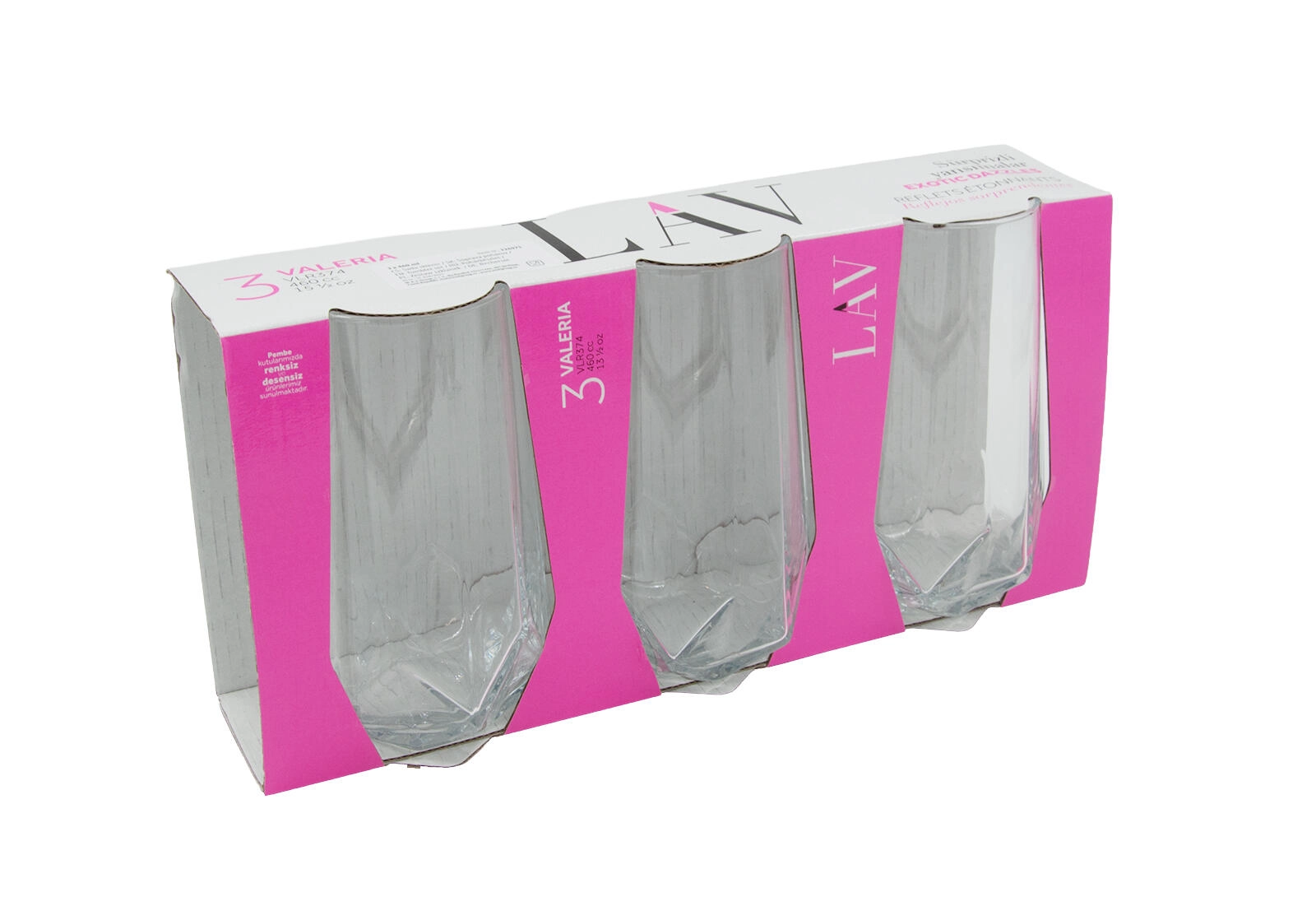 Szklanki VALERIA o pojemności 460 ml świetnie sprawdzą się do wody, lemoniad, napojów bezalkoholowych oraz drinków. Przejrzyste szkło podkreśla kolor napoju, a wysokie wykonanie prezentuje się elegancko na każdym stole. Komplet 3 sztuk pasuje do domu i sprawdzi się jako praktyczny prezent.