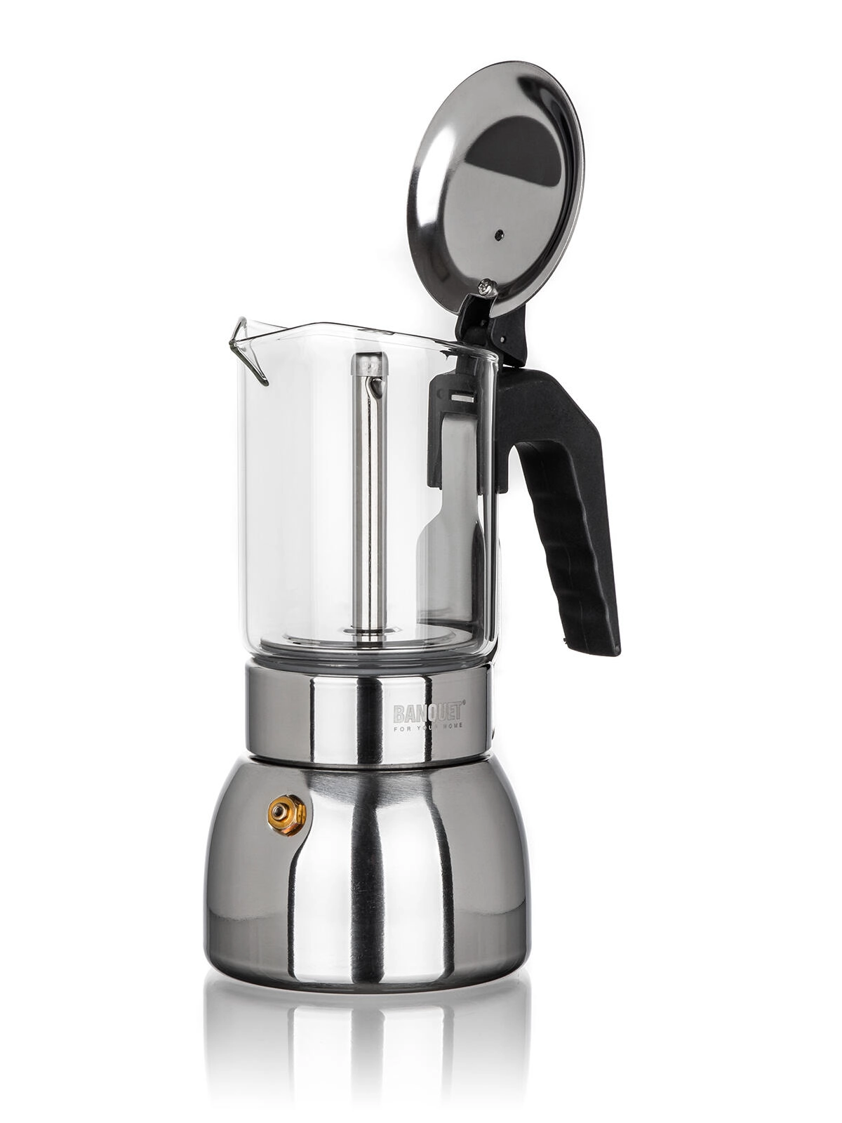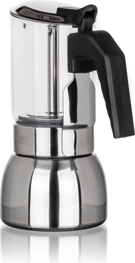 Szklana część pozwala śledzić poziom napoju i przebieg parzenia, dzięki czemu zdejmiesz kawiarkę z kuchenki w odpowiednim momencie dla najlepszego smaku.