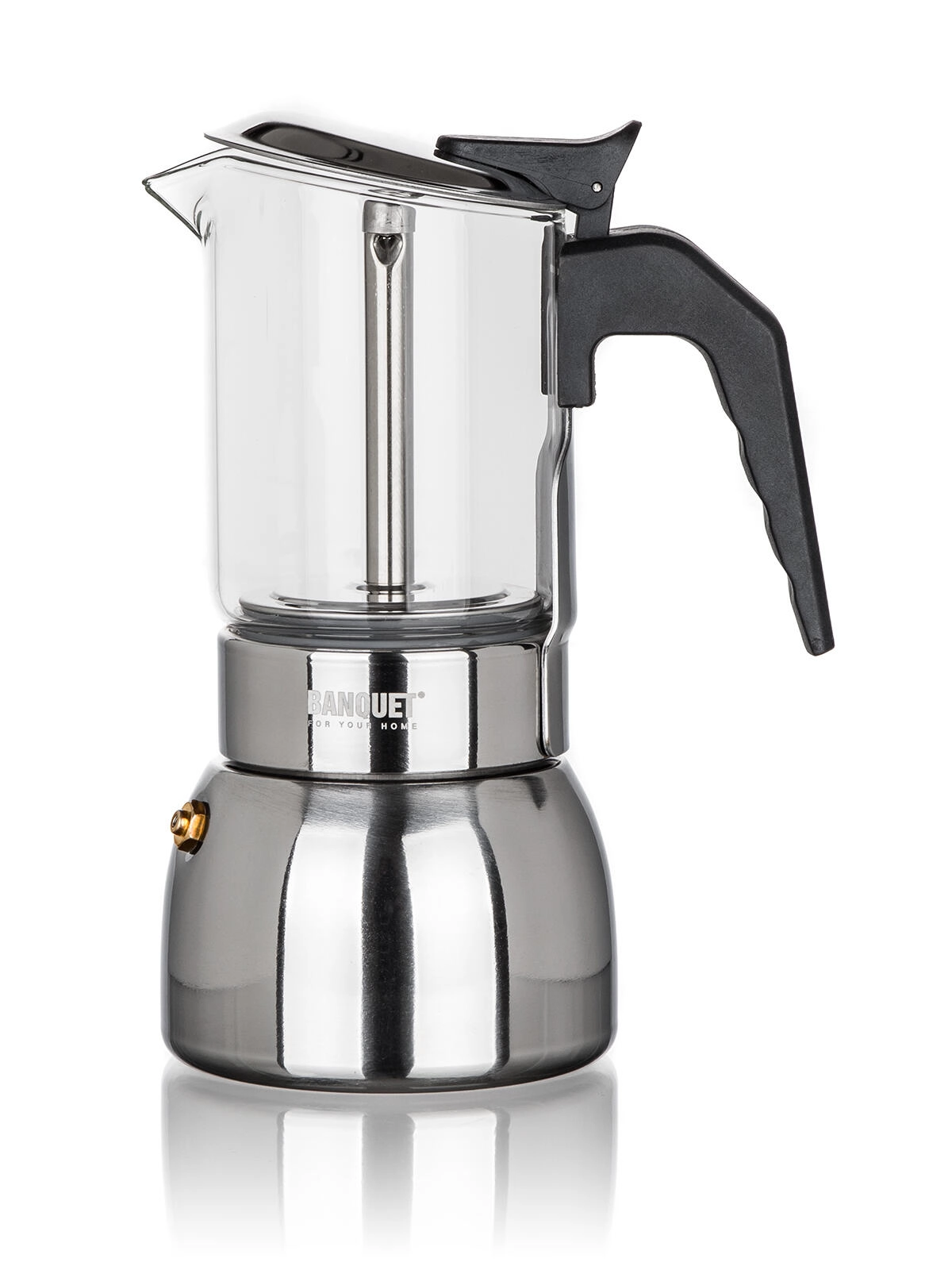Pojemność 200 ml wystarcza na 4 małe filiżanki intensywnej kawy w stylu espresso. Kawiarka działa niezawodnie na wszystkich popularnych rodzajach płyt grzewczych, w tym indukcyjnych, i jest wyposażona w zawór bezpieczeństwa dla stabilnego ciśnienia i bezproblemowego parzenia.