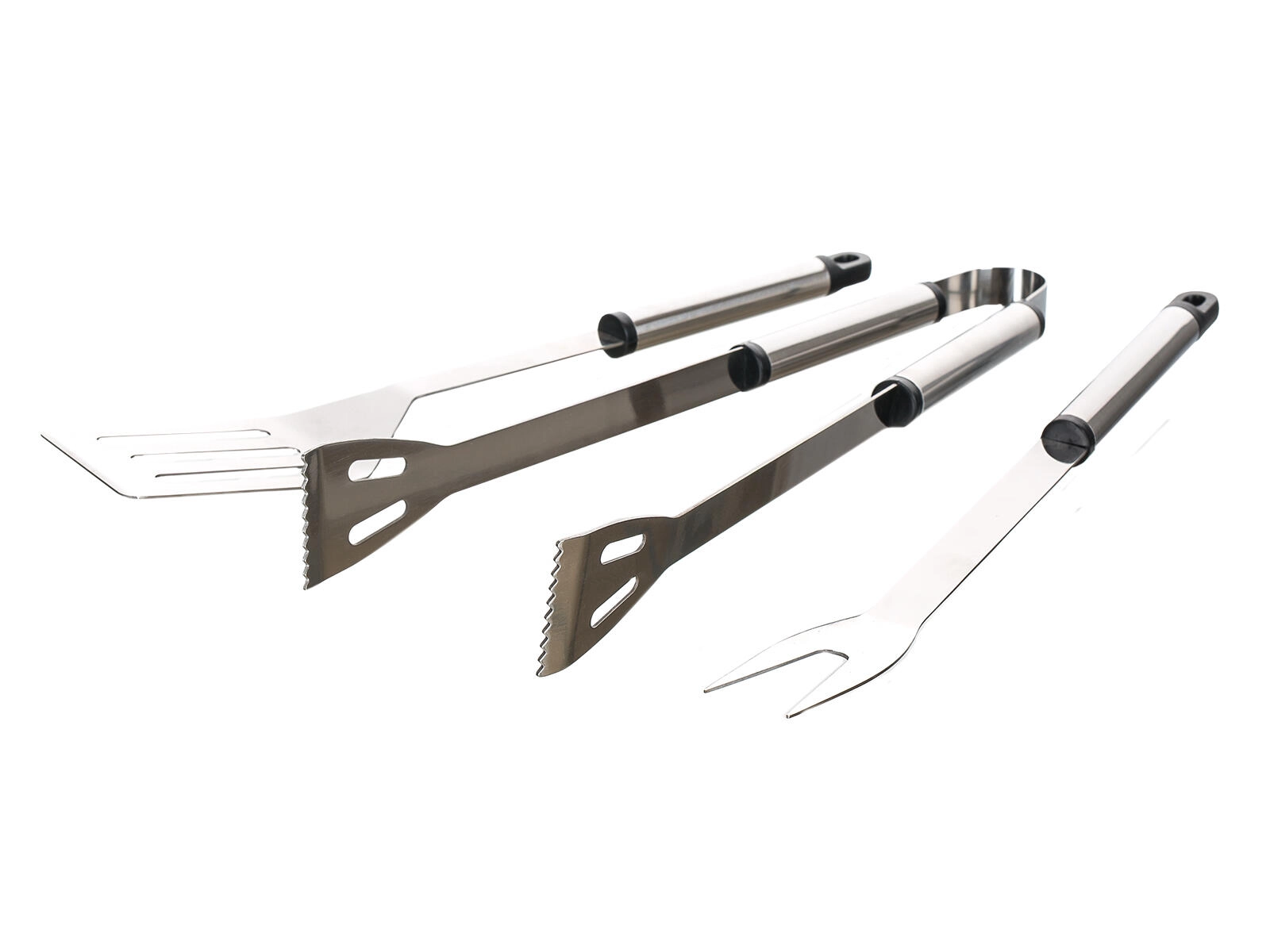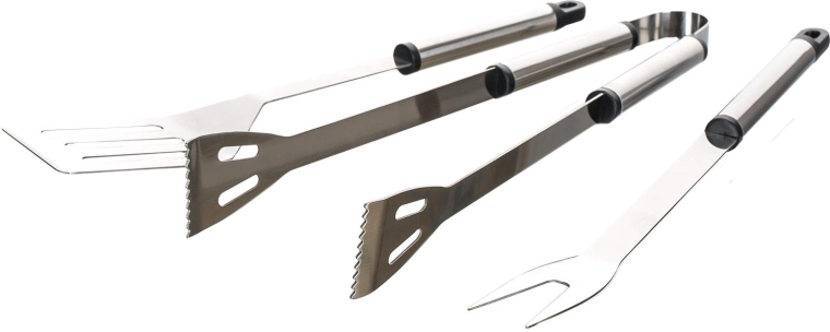 Praktyczny zestaw do grilla ze stali nierdzewnej zawiera trzy podstawowe narzędzia: szczypce, łopatkę i widelec. Wytrzymałe wykonanie oraz oczka do zawieszenia zapewniają wygodne użytkowanie i łatwe przechowywanie przy każdym grillu.