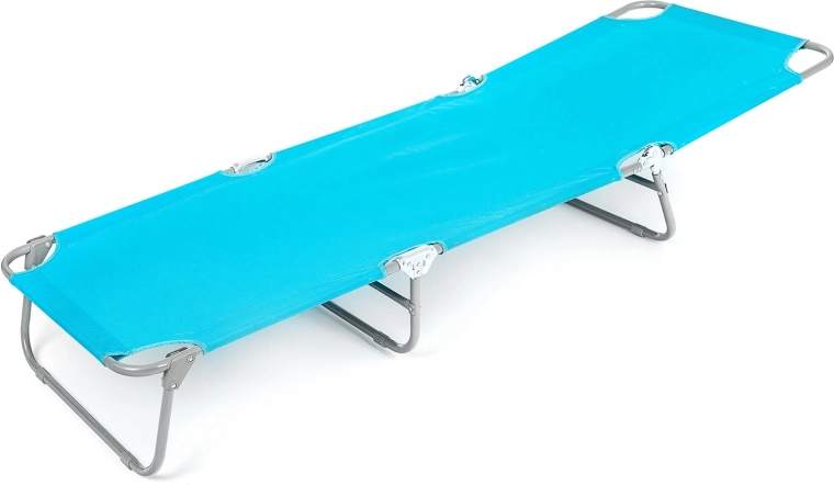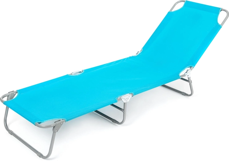 Ciesz się komfortowym wypoczynkiem z leżakiem SUNBAY w kolorze jasnoniebieskim. Solidna metalowa konstrukcja, wytrzymała tkanina 600D Oxford oraz regulowany kąt oparcia i podnóżka zapewniają wygodę w ogrodzie, na tarasie i przy basenie. Nośność 100 kg oraz kompaktowe wymiary 186 × 53 × 24 cm są idealne do codziennego relaksu.