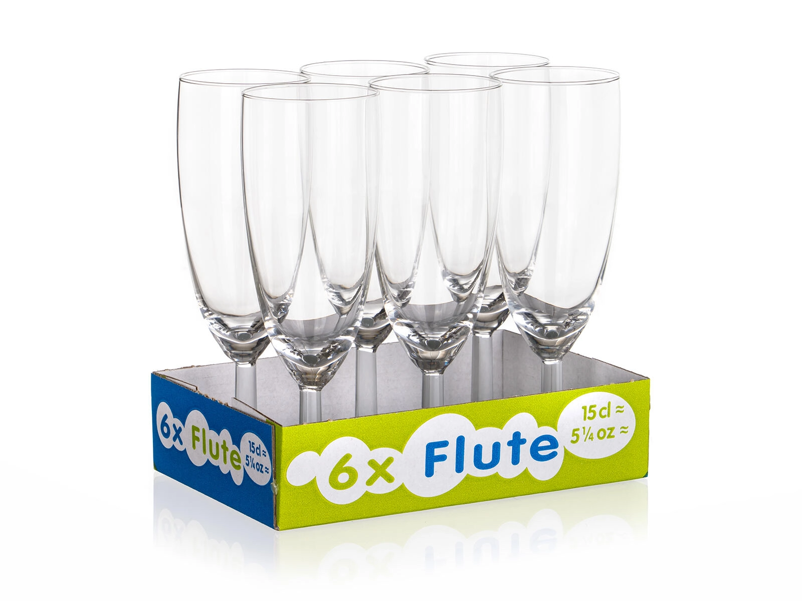 Ten zestaw sześciu kieliszków typu flauta został zaprojektowany do doskonałego delektowania się winami musującymi. Smukła, wysoka czarka pomaga zachować delikatne bąbelki, koncentruje aromaty i dodaje serwowaniu wyjątkowego charakteru. Przezroczyste szkło pięknie podkreśla barwę trunku, a elegancki kształt uświetnia każdą uroczystą chwilę.