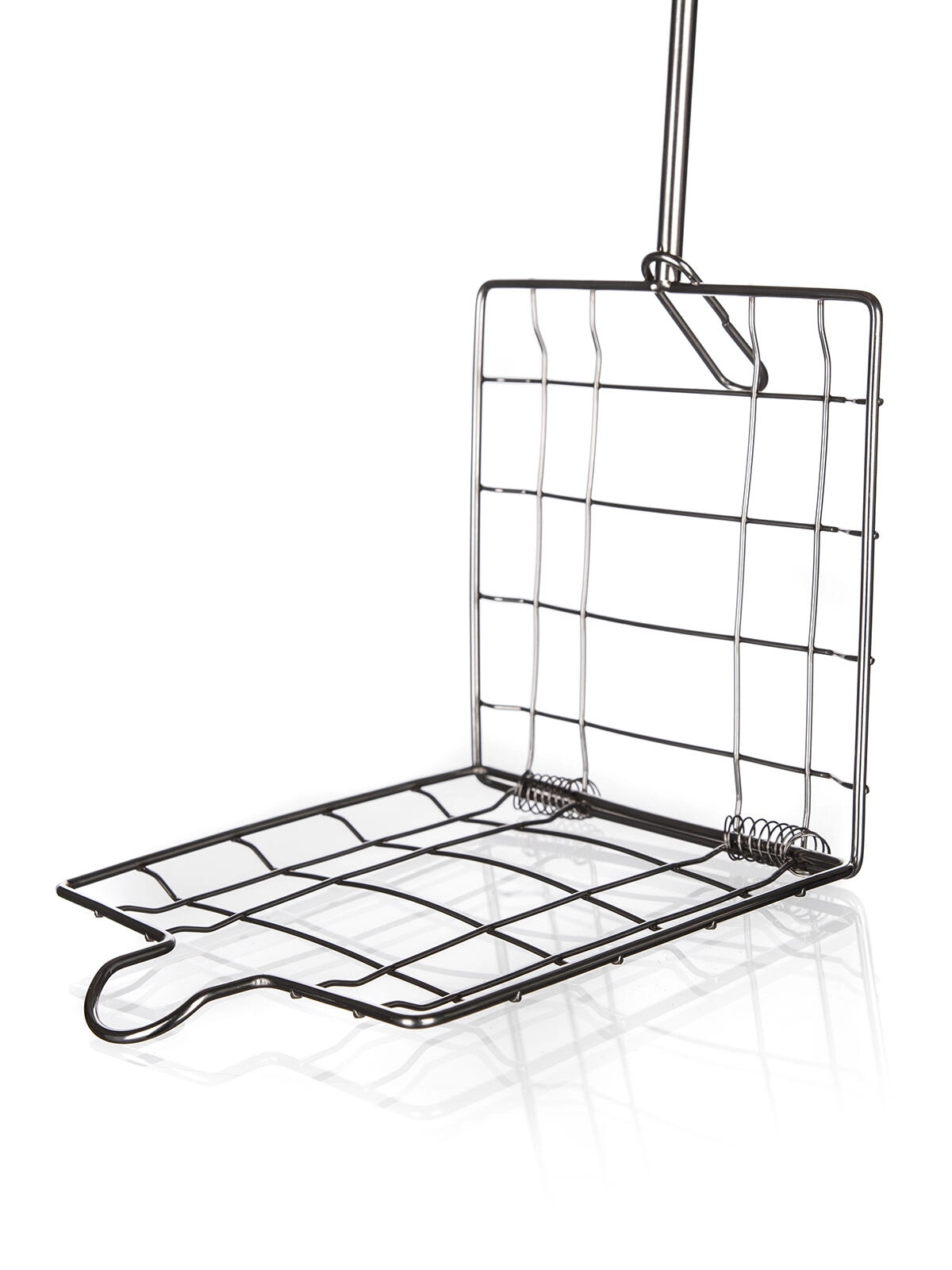 Druciana kratka z blokadą utrzyma burgery, kiełbasy i warzywa na miejscu, zapobiegając wpadaniu przez ruszt.