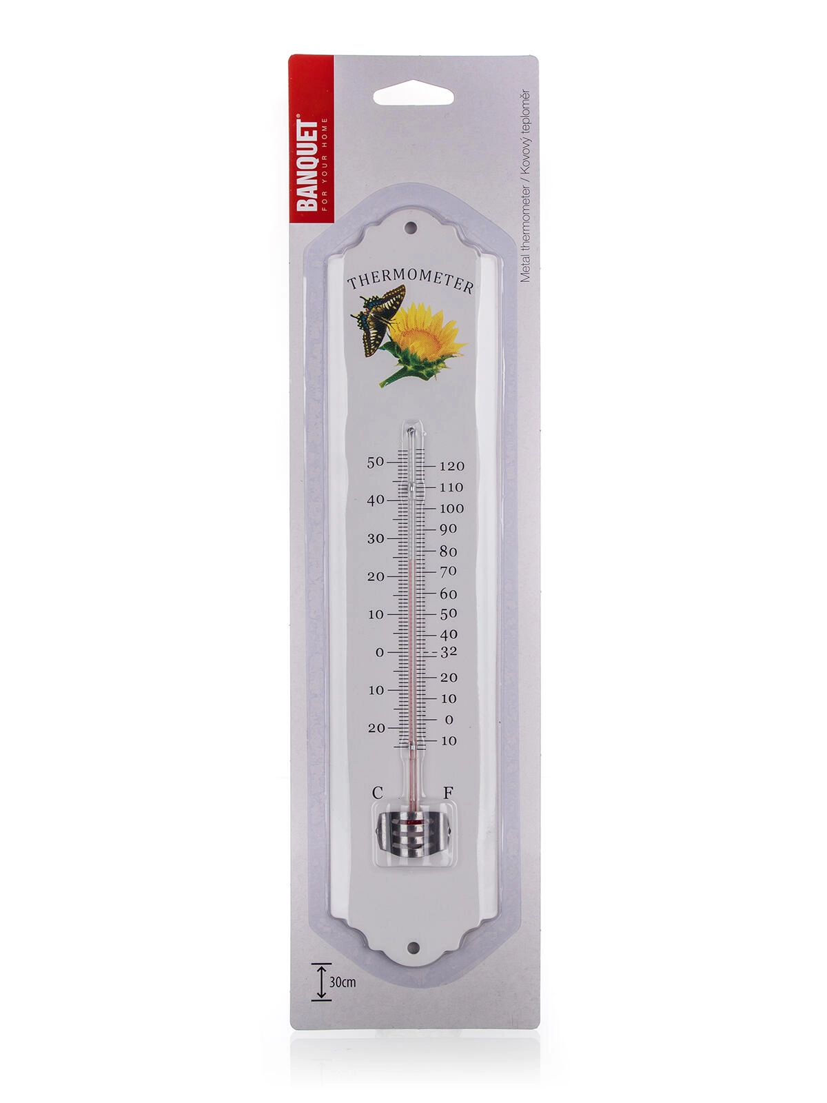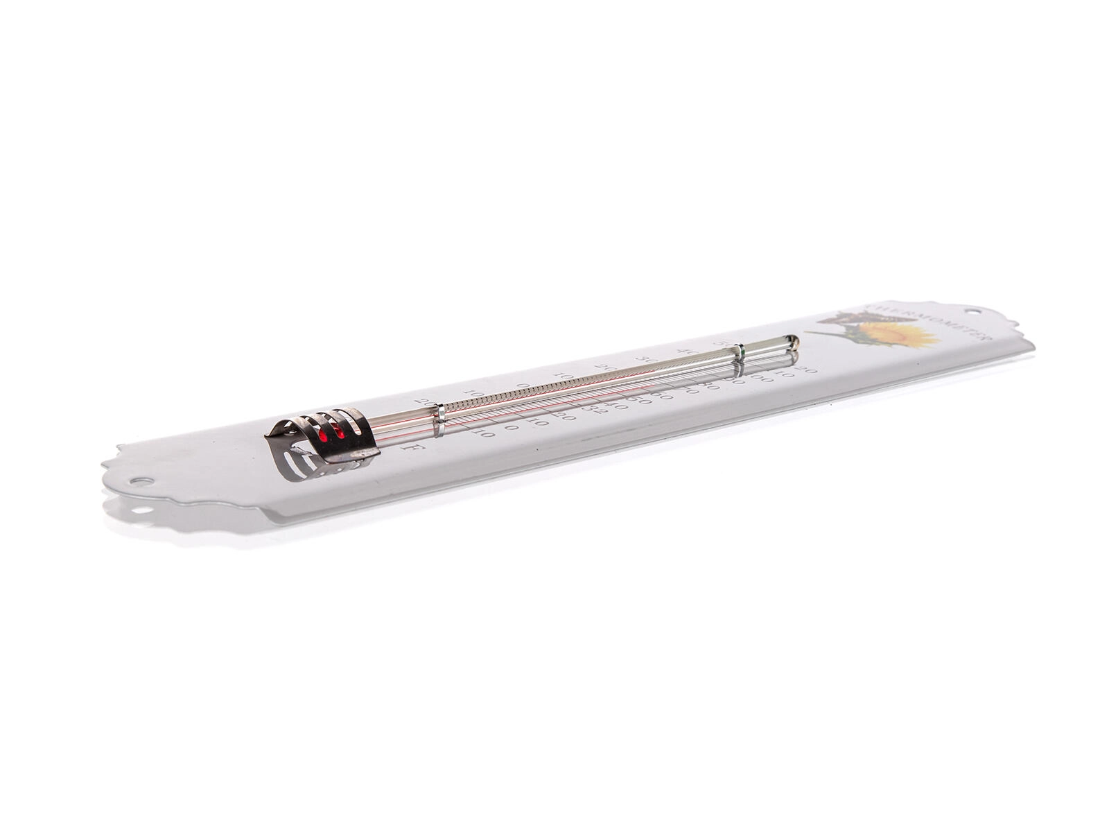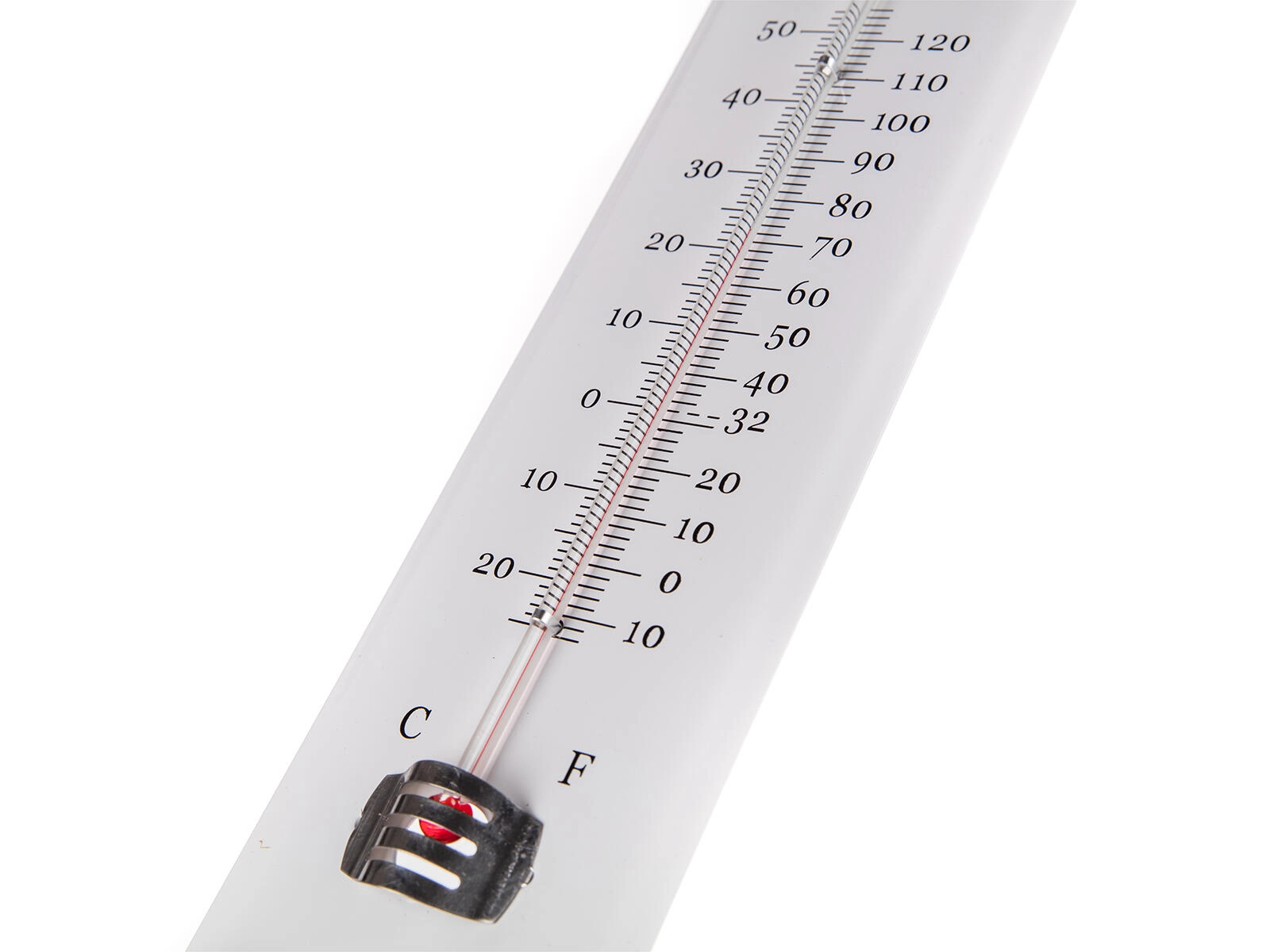 Termometr jest wyposażony w szklaną kapilarę z czerwoną cieczą dla wyraźnych odczytów, kontrastowy nadruk oraz oczko do zawieszenia na ścianie. Sprawdzi się w domu, na balkonie, tarasie, w warsztacie czy szklarni.