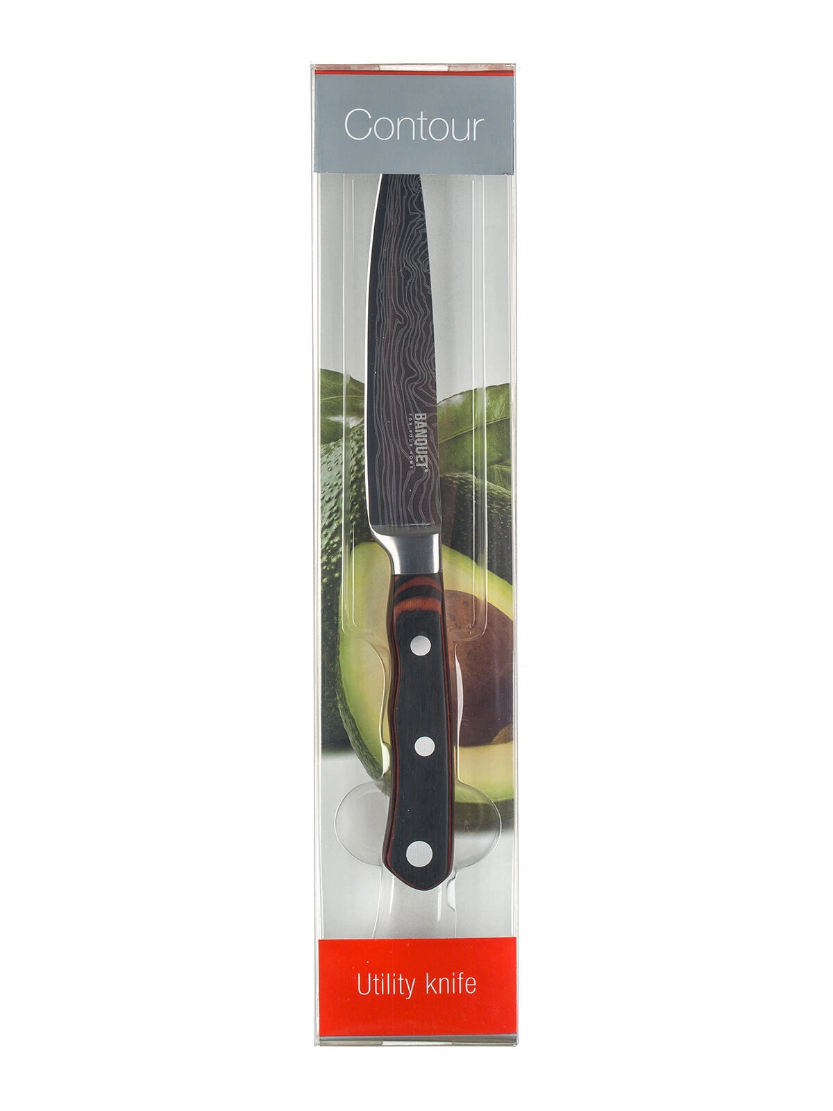 Praktyczny uniwersalny nóż CONTOUR o całkowitej długości 23,5 cm i ostrzu 12,5 cm jest idealny do codziennego krojenia, porcjowania oraz obierania składników. Dzięki wysokiej jakości wykonaniu ze stali nierdzewnej oferuje długą żywotność, ostre i precyzyjne cięcia oraz łatwą konserwację, dlatego szybko stanie się niezastąpionym pomocnikiem w każdej kuchni.