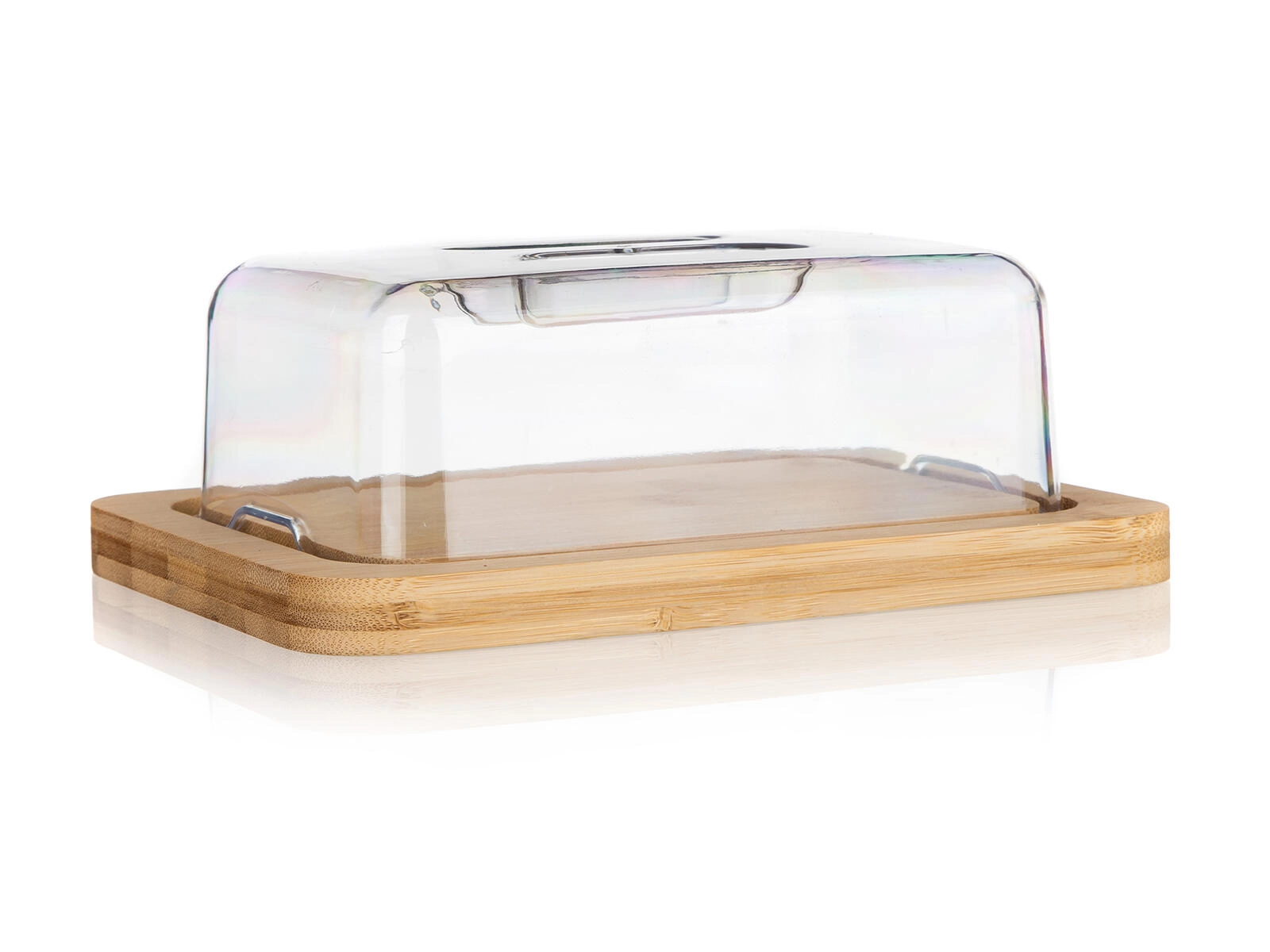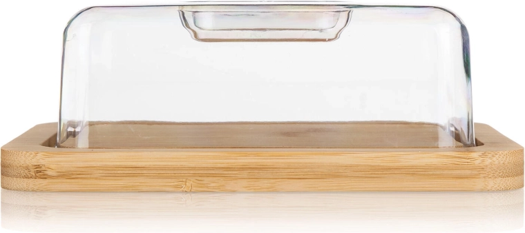 Ta stylowa maselniczka łączy naturalne drewno bambusowe z wytrzymałą akrylową pokrywką, która chroni zawartość przed wysychaniem, zapachami i zabrudzeniami. Przezroczysta osłona umożliwia natychmiastową kontrolę zawartości, a solidna drewniana podstawa pełni również funkcję deski do serwowania.