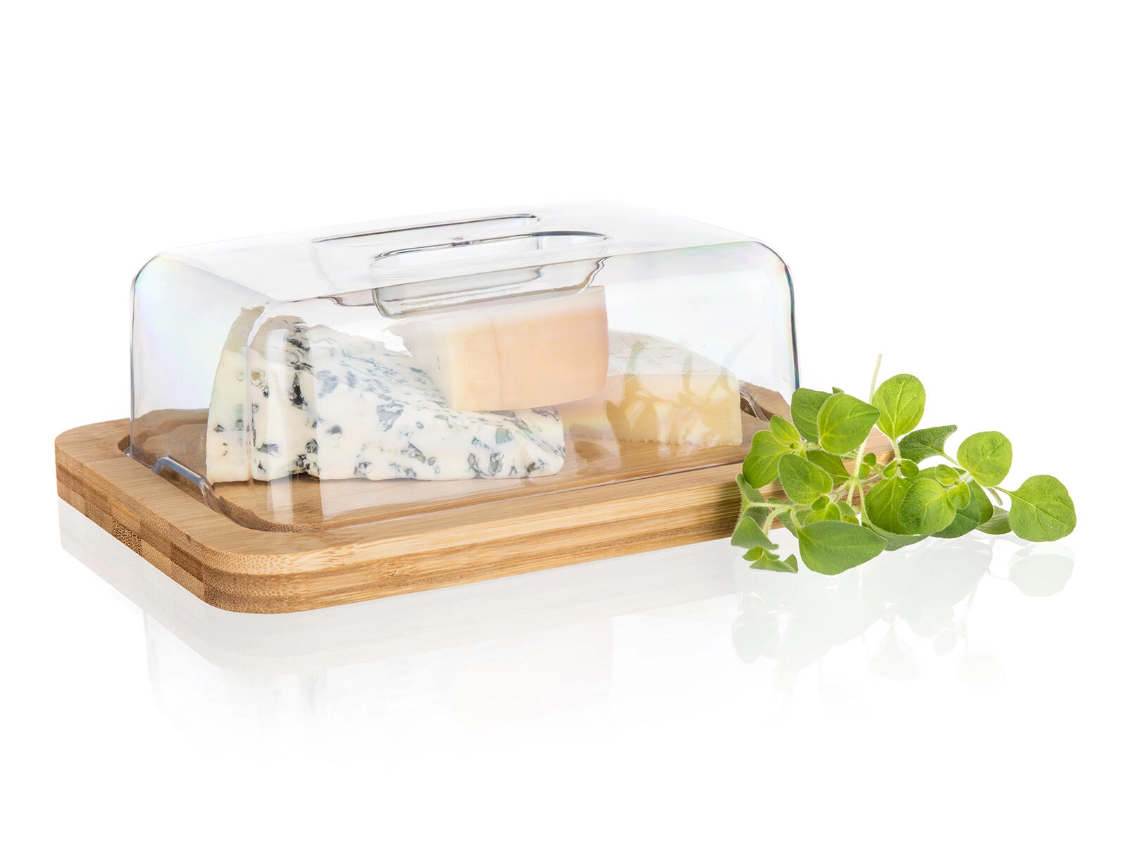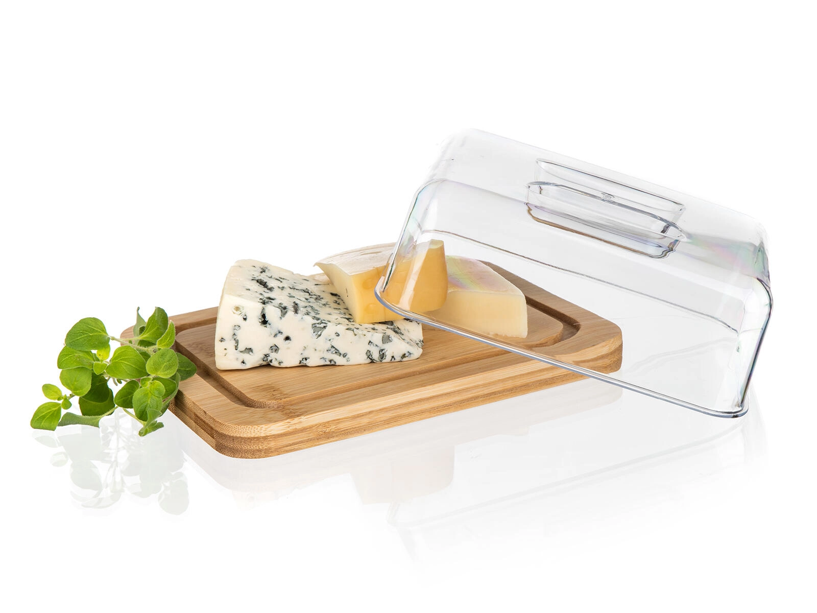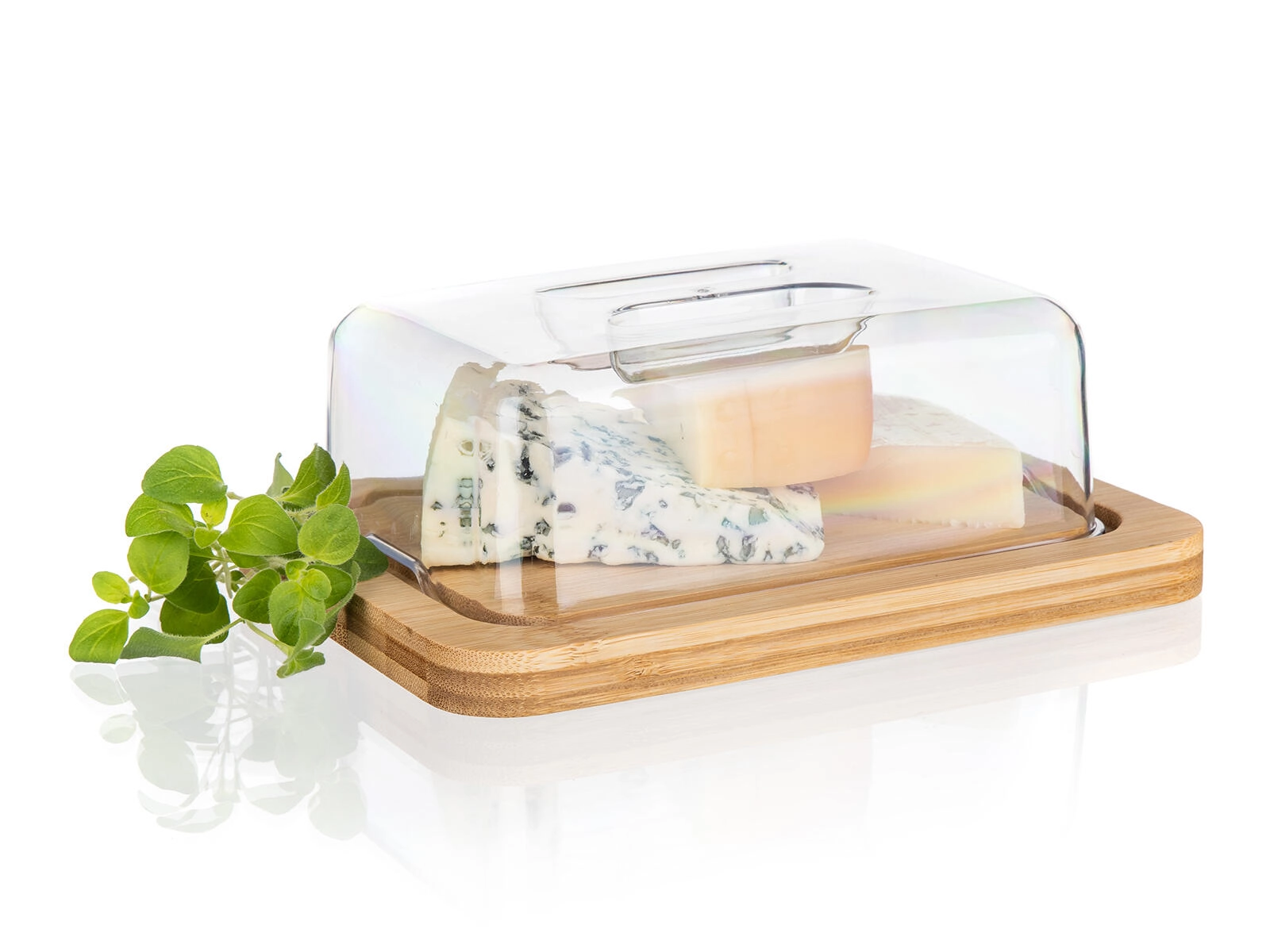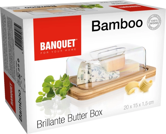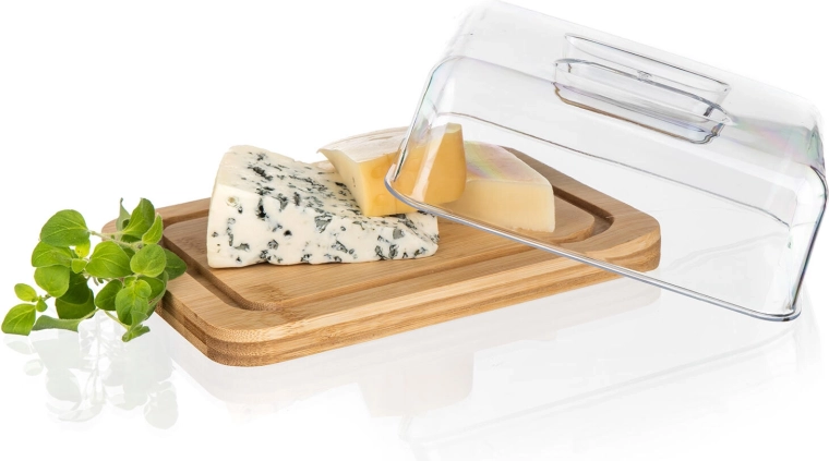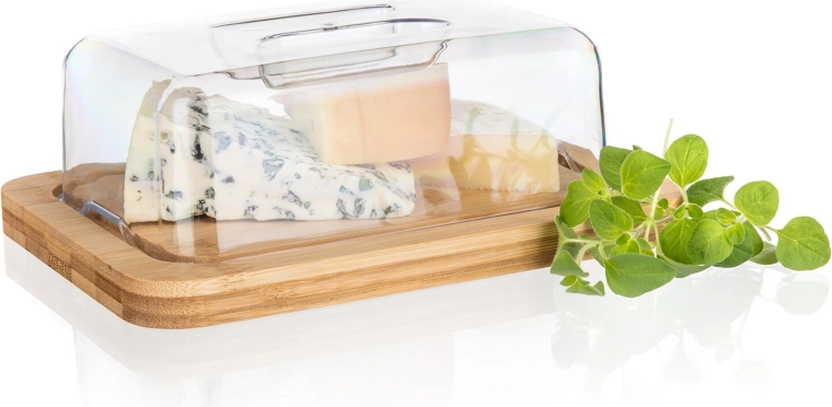 Solidna bambusowa podstawa jest trwała, stabilna i służy jako elegancka deska do krojenia oraz serwowania masła i serów.
