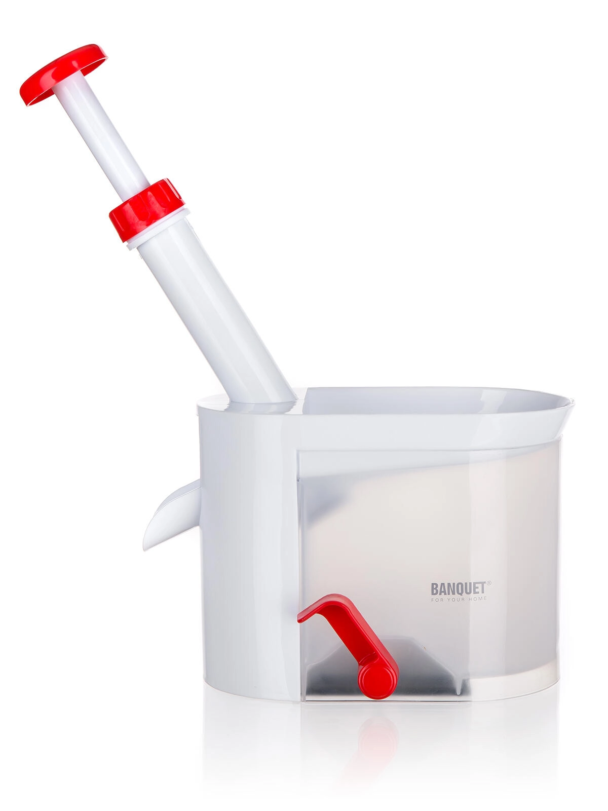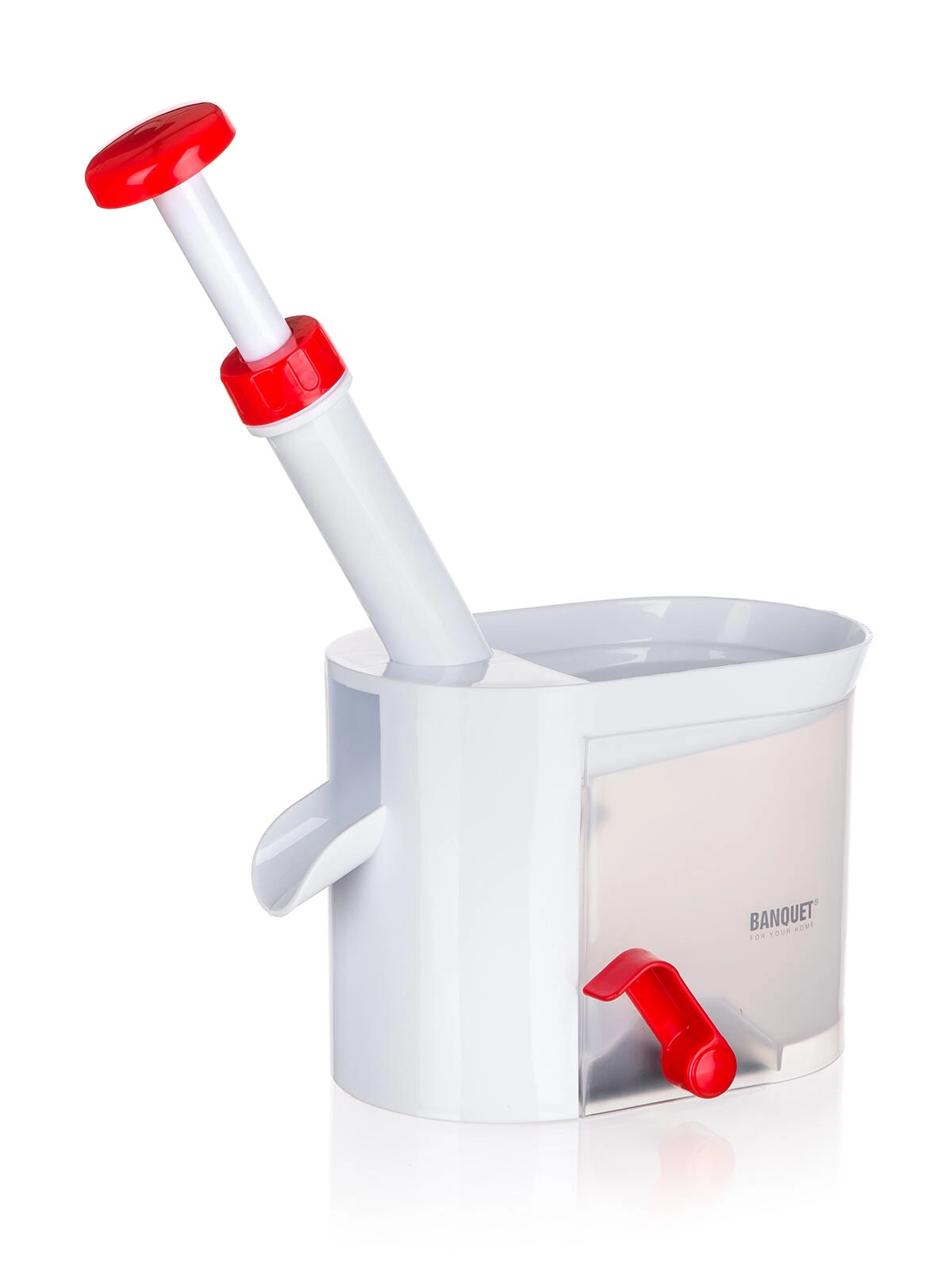 Urządzenie wykonane jest z wytrzymałego plastiku w biało‑czerwonej kolorystyce, łatwo się je rozkłada i czyści. Idealne do większych ilości owoców – na kompoty, marmolady, wypieki i mrożenie. Kompaktowe wymiary oszczędzają miejsce w kuchni.
