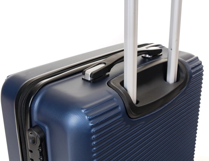 Solidna wysuwana rączka z wielostopniową regulacją i blokadą przed samoczynnym wsunięciem dla wygodnego prowadzenia walizki.