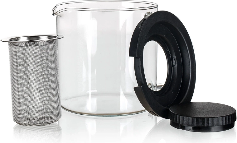 Dzbanka wykonano z odpornego termicznie szkła borokrzemowego (−40 °C do 300 °C), dlatego można go używać na kuchence elektrycznej lub gazowej z dyfuzorem płomienia. Po opróżnieniu łatwo go rozłożyć i włożyć do zmywarki. Ergonomiczny szklany uchwyt i bezpieczna plastikowa pokrywka zapewniają wygodną obsługę i czyste nalewanie.