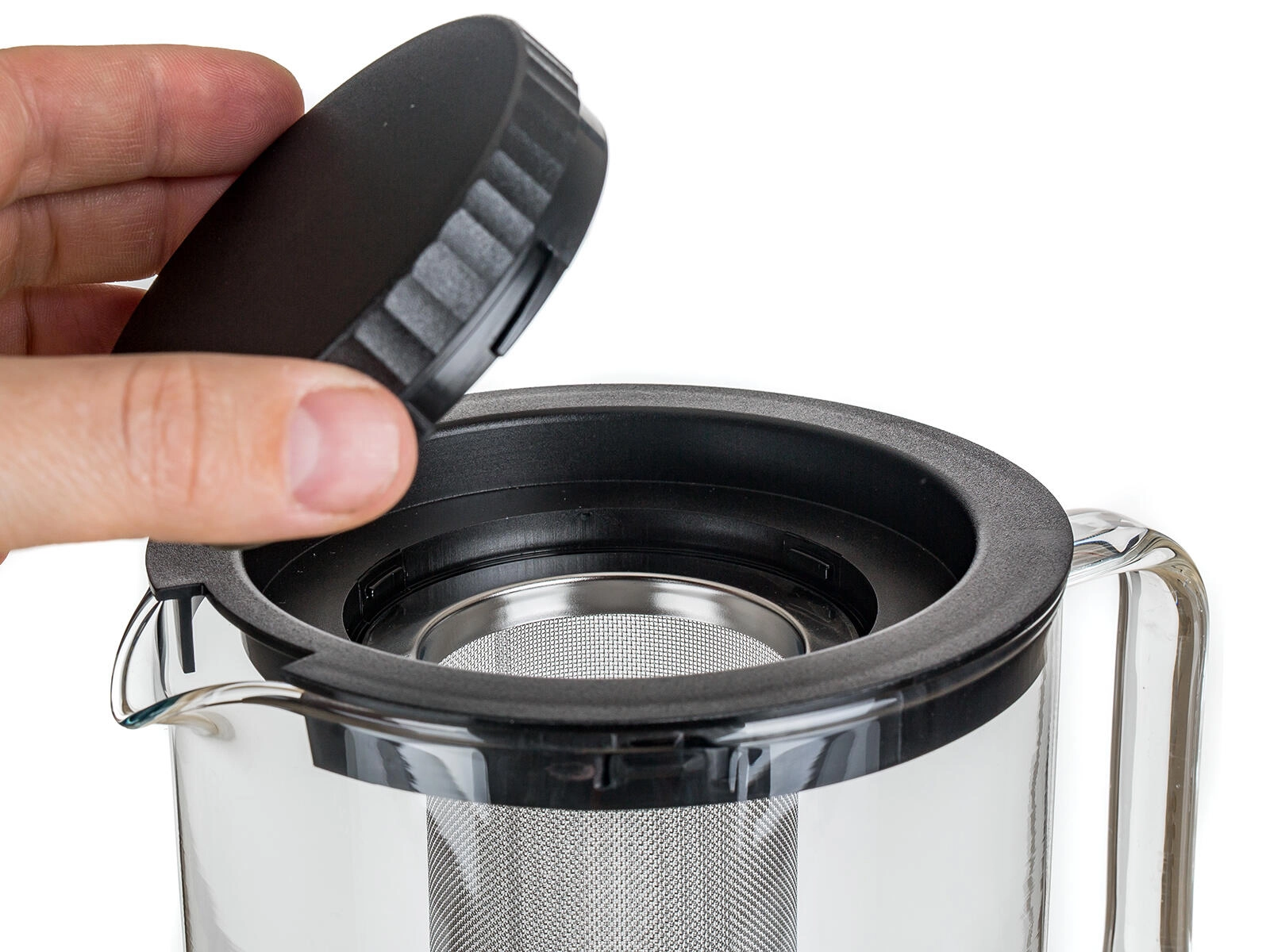 Wyjmowany koszyk ze stali nierdzewnej wychwytuje nawet drobne listki i zioła, dzięki czemu napój pozostaje klarowny i pełen smaku. Łatwo się wyjmuje i czyści.