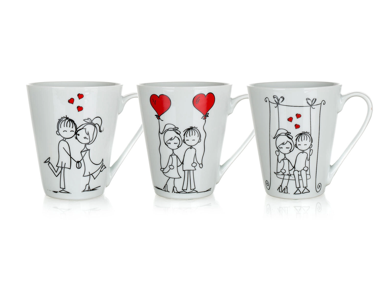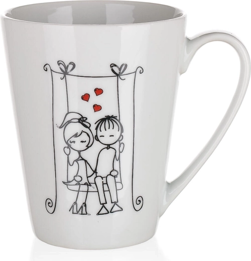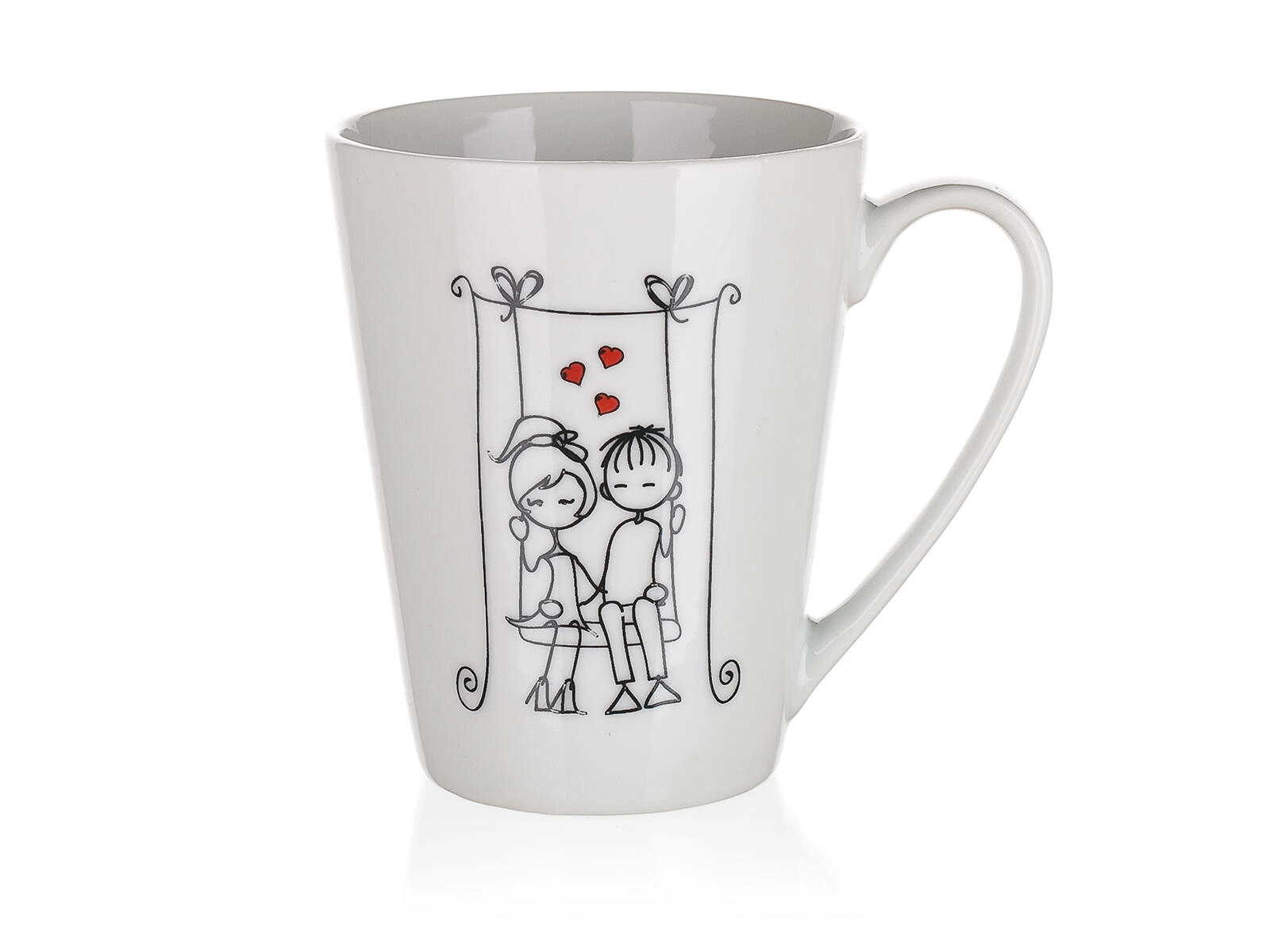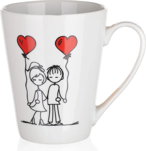 Ciesz się ulubionymi gorącymi i zimnymi napojami w eleganckim ceramicznym kubku LOVE o pojemności 330 ml. Dzięki wyższemu, lekko stożkowemu kształtowi wygodnie leży w dłoni, świetnie się z niego pije, a romantyczne dekoracje z motywami pary i serduszek sprawdzą się jako prezent i na co dzień.