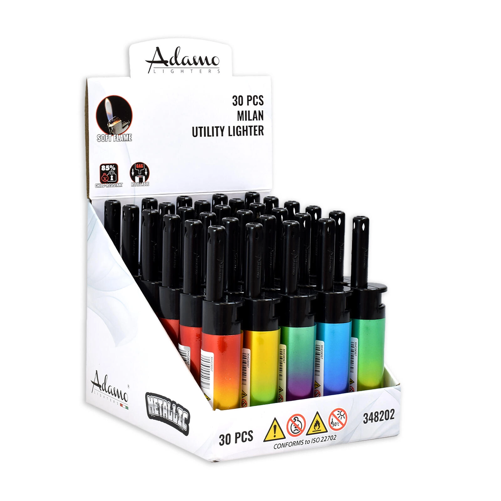 Praktyczna zapalniczka płomieniowa z długą metalową dyszą do bezpiecznego zapalania świec, grilli i kuchenek. Wytrzymałe nylonowe korpus znosi wysokie temperatury, płomień jest płynnie regulowany, a zapalniczkę można wielokrotnie napełniać gazem. Atrakcyjny tęczowy mix kolorów czyni z niej stylowego pomocnika do każdego domu.