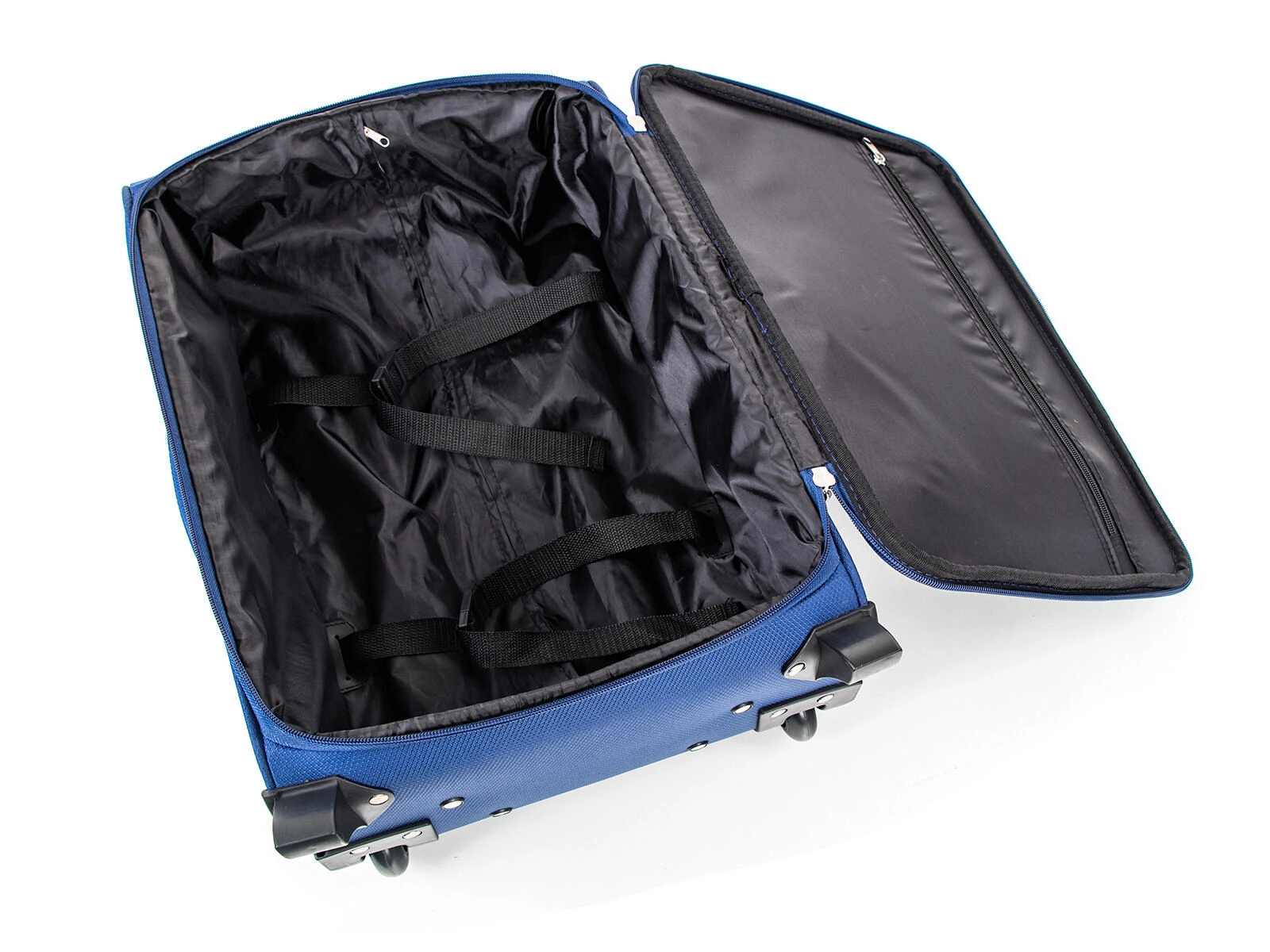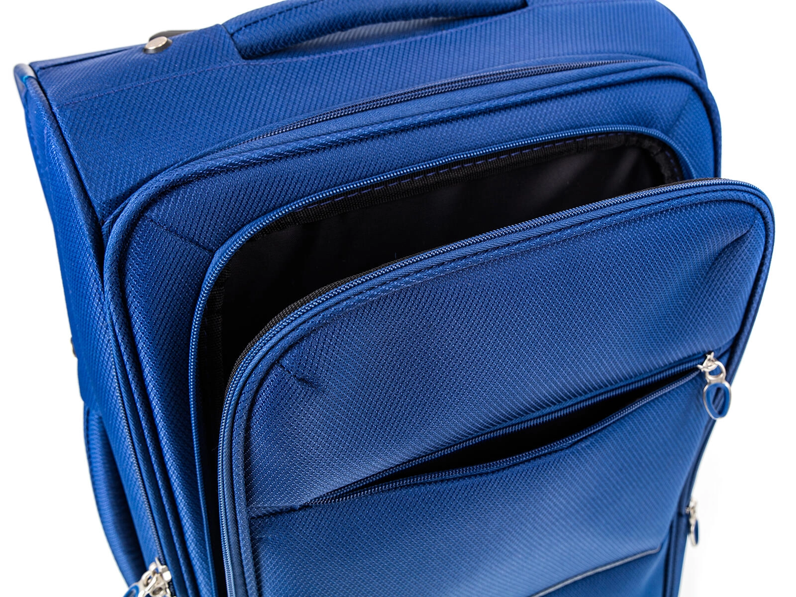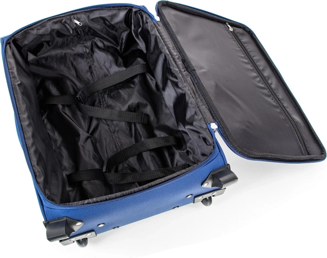 Wnętrze jest wyposażone w pasy zabezpieczające oraz kieszeń na suwak w klapie dla lepszej organizacji. Z przodu znajduje się pojemna zewnętrzna kieszeń dla szybkiego dostępu do dokumentów lub akcesoriów. Górny i boczny uchwyt ułatwiają przenoszenie po schodach oraz odkładanie do luku bagażowego.