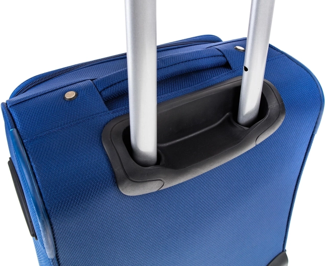 Wysuwana aluminiowa rączka z wieloma pozycjami regulacji pozwala dopasować wysokość do Twojej sylwetki i wygodnie prowadzić kuferek za sobą.