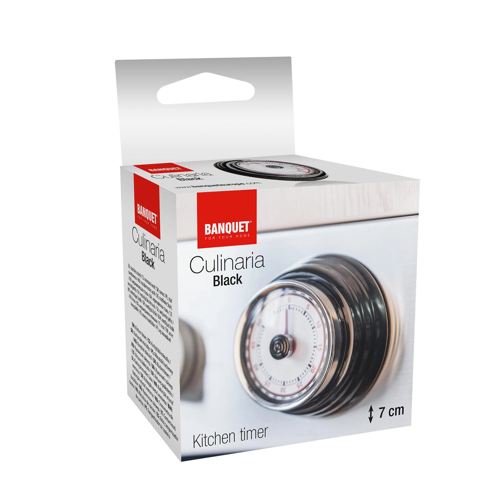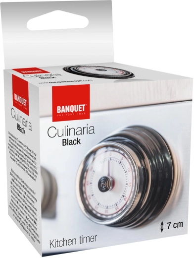 Odkryj niezawodny mechaniczny minutnik CULINARIA, który wyróżnia się eleganckim czarnym kolorem, chromowanym pierścieniem oraz czytelnym cyferblatem z wyraźnymi oznaczeniami minut. Ustawianie jest szybkie poprzez przekręcenie środkowego pokrętła, a po upływie czasu rozlega się głośny sygnał dźwiękowy.