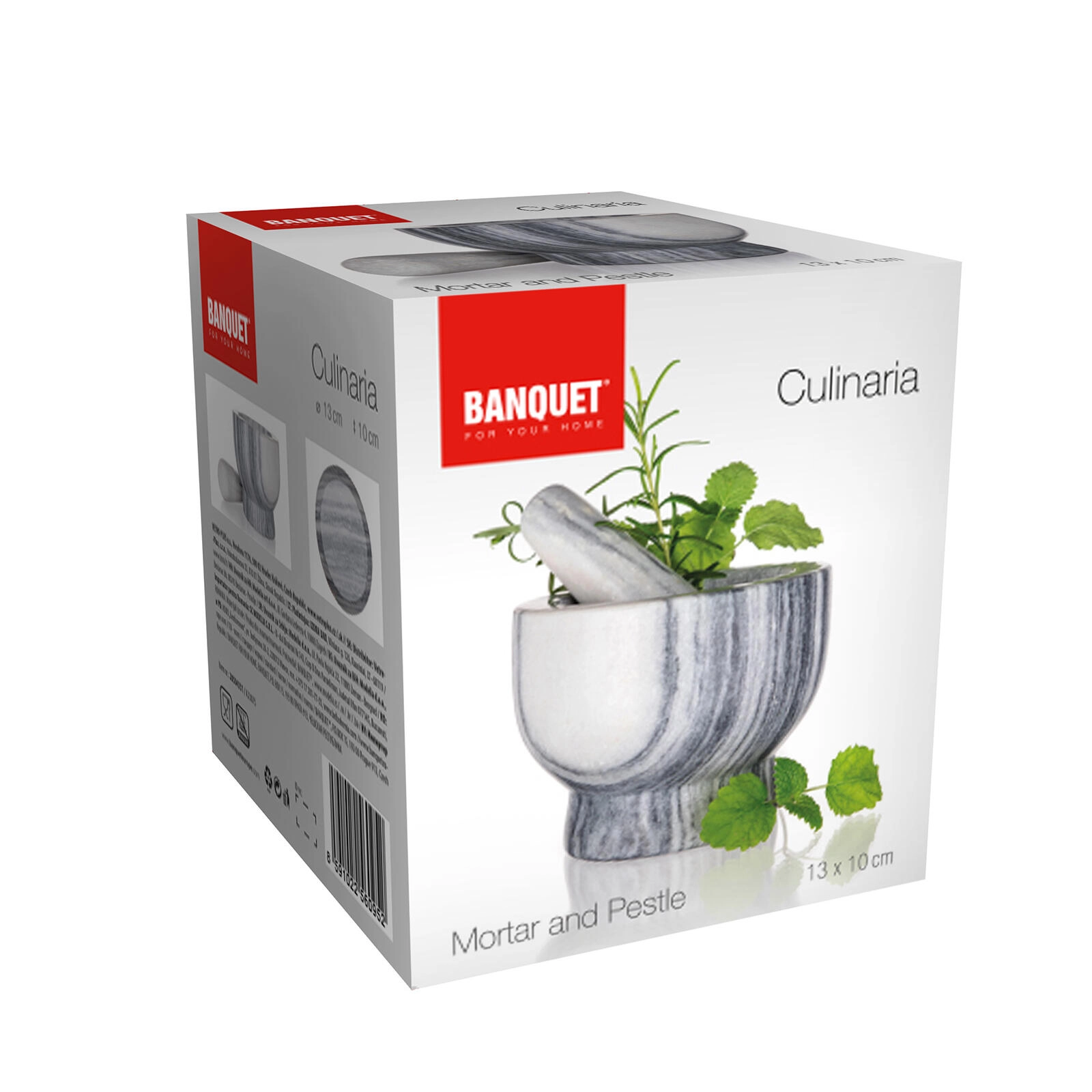 Odkryj tradycyjny sposób przygotowywania przypraw i ziół z marmurowym moździerzem Culinaria. Naturalny kamień gwarantuje wysoką trwałość, optymalną wagę dla stabilności oraz łatwe rozdrabnianie składników bez utraty aromatu. Świeżo rozgniecione przyprawy podkreślą smak Twoich potraw i nadadzą im autentyczny zapach.