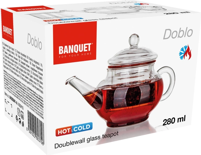 Elegancki szklany czajniczek o pojemności 0,28 l z wyjmowanym infuserem do herbat sypanych oferuje podwójne ścianki dla lepszego utrzymania temperatury, krystalicznie przejrzyste szkło do kontroli parzenia oraz łatwą pielęgnację w zmywarce.