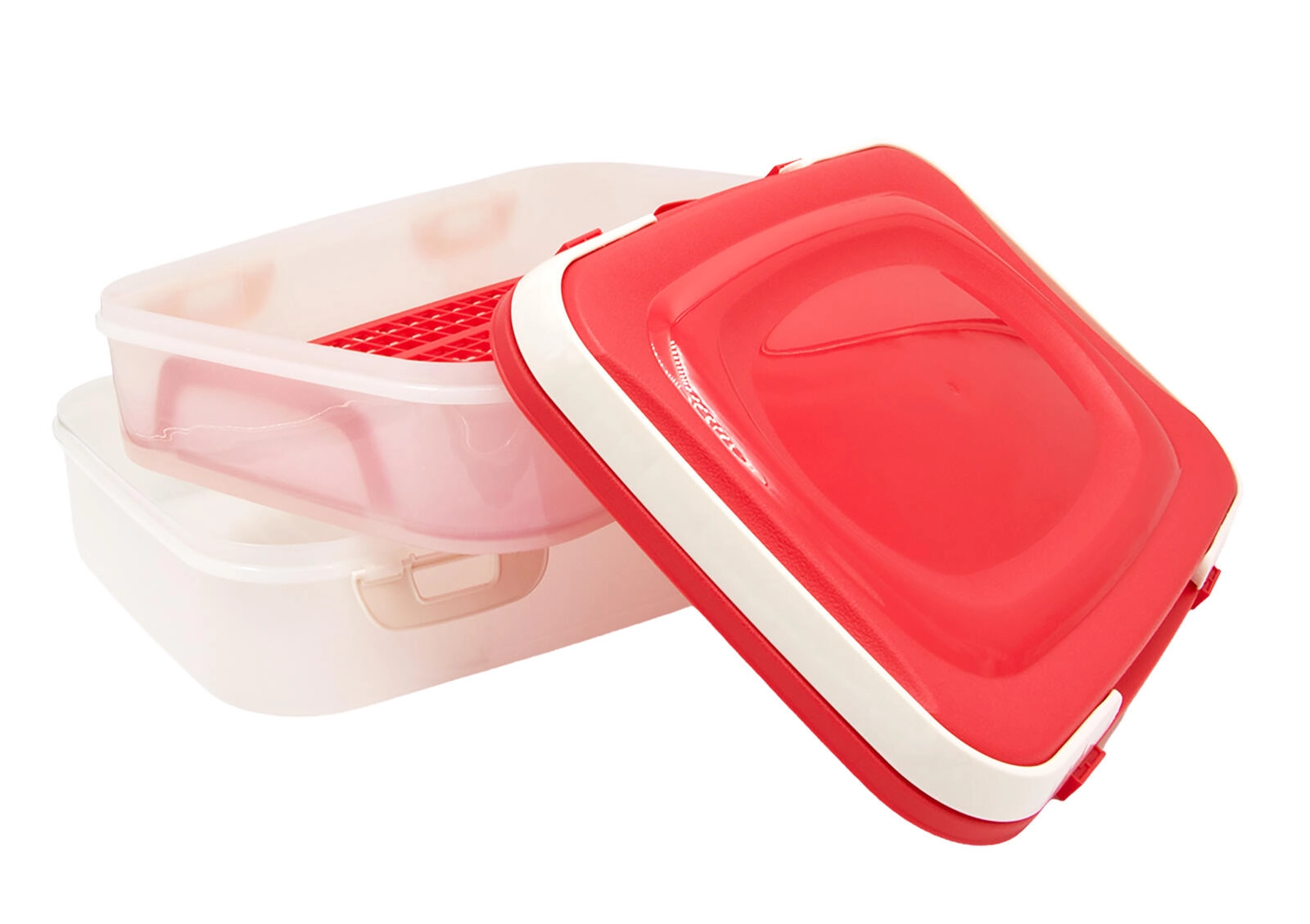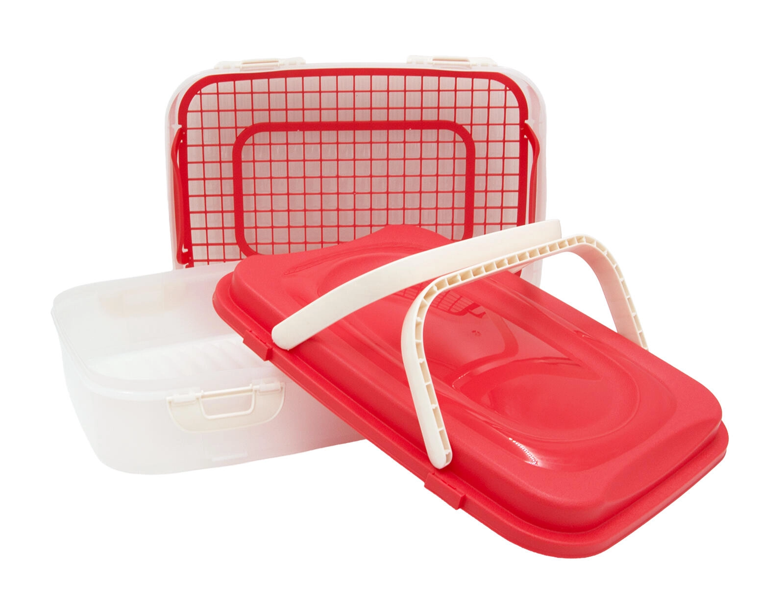 Dzięki wewnętrznej kratce z uchwytami łatwo wyjmiesz zawartość bez bałaganu. Pojemnik jest idealny na pikniki, przyjęcia w ogrodzie, wizyty u znajomych oraz do codziennego transportu do pracy. Łatwy w czyszczeniu i odpowiedni do wielokrotnego użytku.