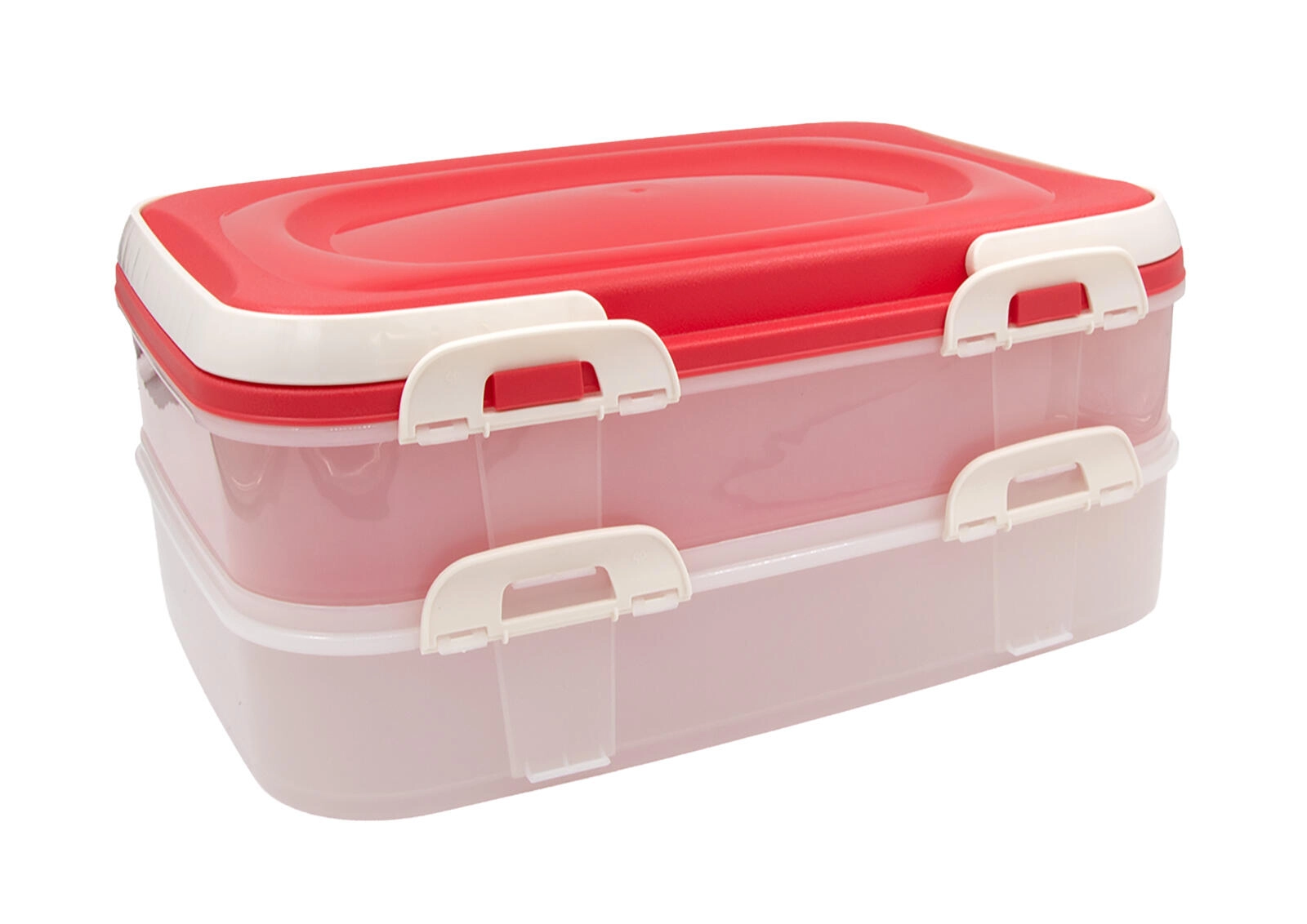 Szukasz praktycznego pudełka na kanapki, desery, owoce lub pieczywo? Ten 2‑poziomowy pojemnik do przenoszenia z solidnymi klipsami i uchwytami zadba, aby Twoja żywność dotarła na miejsce świeża i bezpiecznie zamknięta. Przezroczyste ścianki umożliwiają szybką kontrolę zawartości, a różowa pokrywa dodaje elegancji każdemu nakryciu stołu.