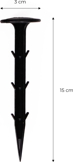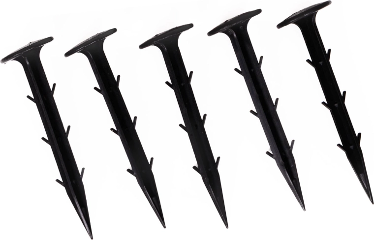Boczne haczyki/ząbki wgryzają się w glebę i tkaninę, zapobiegając przesuwaniu nawet przy wietrze lub chodzeniu po powierzchni.