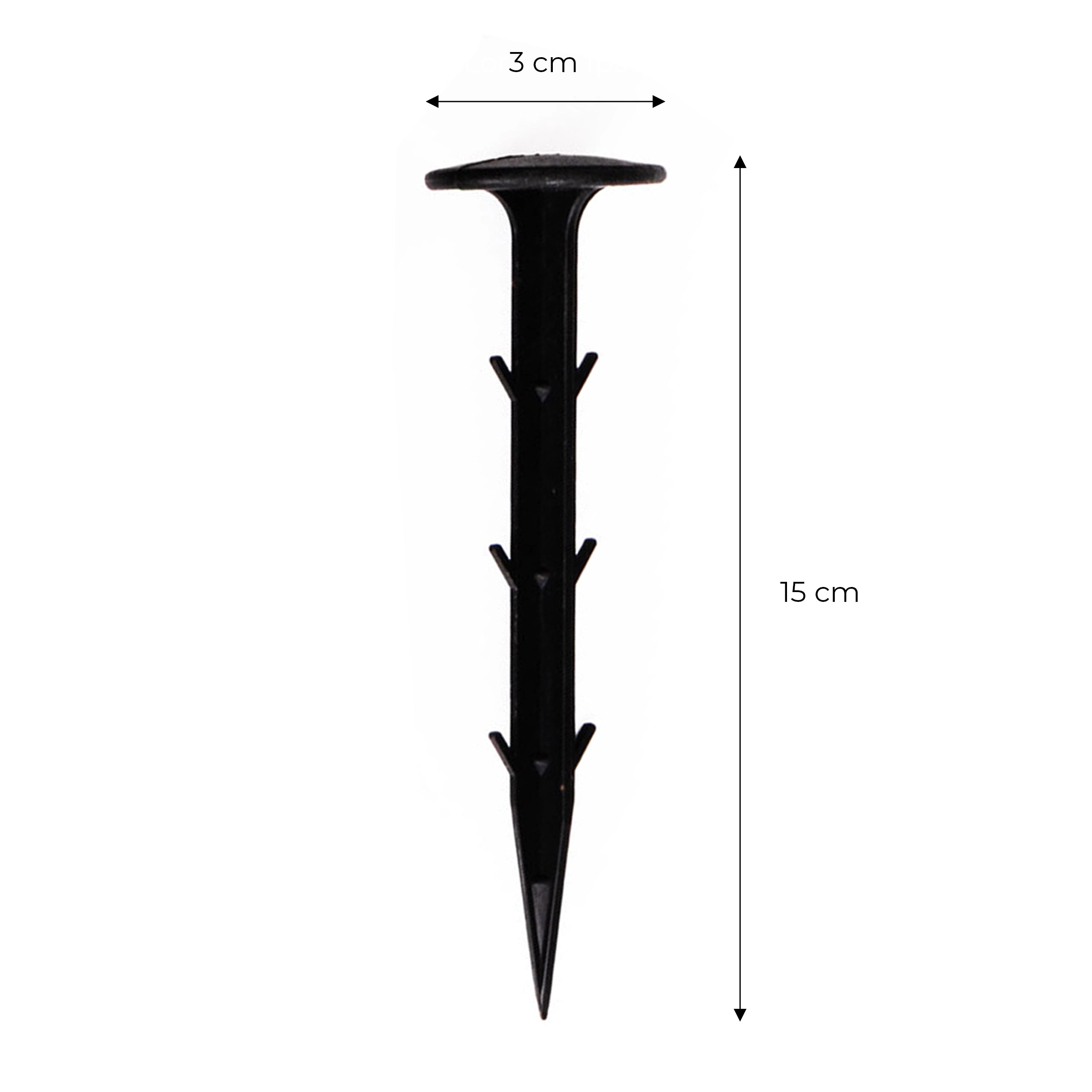 Praktyczny zestaw kotew do mocowania tkanin ogrodowych i mat ściółkujących. Uniwersalne zastosowanie, pewne zabezpieczenie przed przesuwaniem oraz łatwy montaż dzięki szerokiej główce, ostrzej końcówce i stabilizującym haczykom. Idealne do rabat, ścieżek i krawędzi trawników.