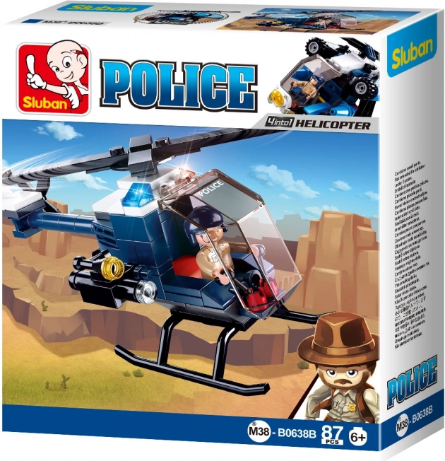 Sluban Policja 4w1 helikopter: 88 elementów, 1 figurka, średni poziom trudności, kompatybilny z LEGO/COBI/Mega Bloks. Wysokiej jakości plastik ABS. Dla dzieci od 6 lat.