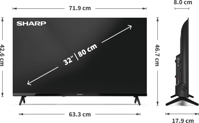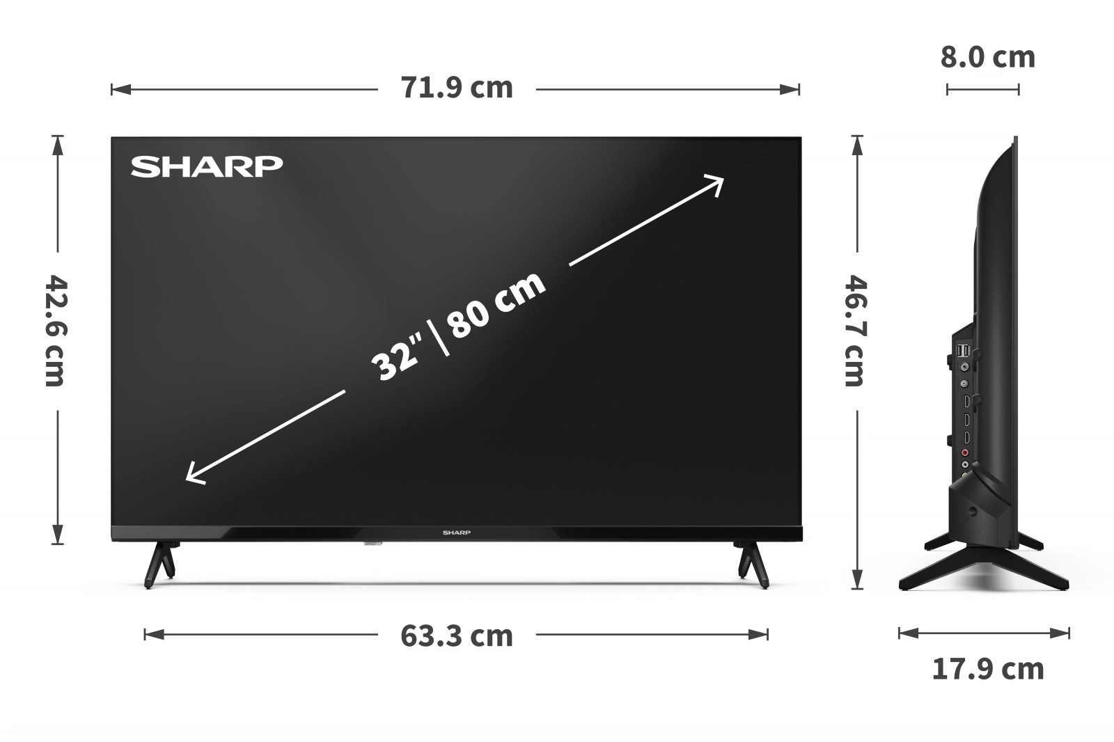 SHARP 32HA1405E to wszechstronny 32" telewizor LED idealny do salonu, sypialni i pokoju dziecięcego. Dzięki cienkiej ramce i nowoczesnej podstawie prezentuje się elegancko i zapewnia wciągający obraz o wysokim kontraście na co dzień.