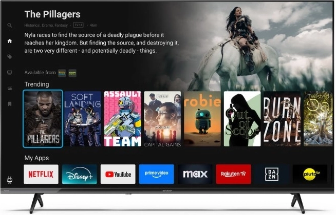 Dostępne są praktyczne wejścia HDMI dla konsol i odtwarzaczy oraz USB do odtwarzania multimediów z zewnętrznej pamięci. Pilot SHARP AQUOS oferuje bezpośrednie przyciski do Netflix, Prime Video i YouTube, dzięki czemu dotrzesz do ulubionych treści natychmiast.