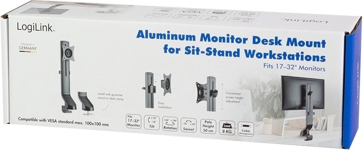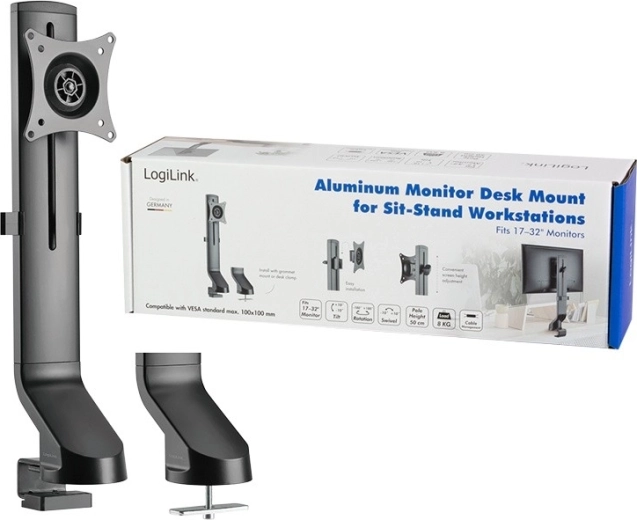 Ten metalowy uchwyt biurkowy jest zgodny ze standardem VESA i przeznaczony do monitorów 17–32" o masie do 8 kg. Dzięki regulowanemu słupkowi i przegubowi z łatwością dopasujesz wysokość, kąt nachylenia i obrót do komfortowej pracy, oglądania i grania.