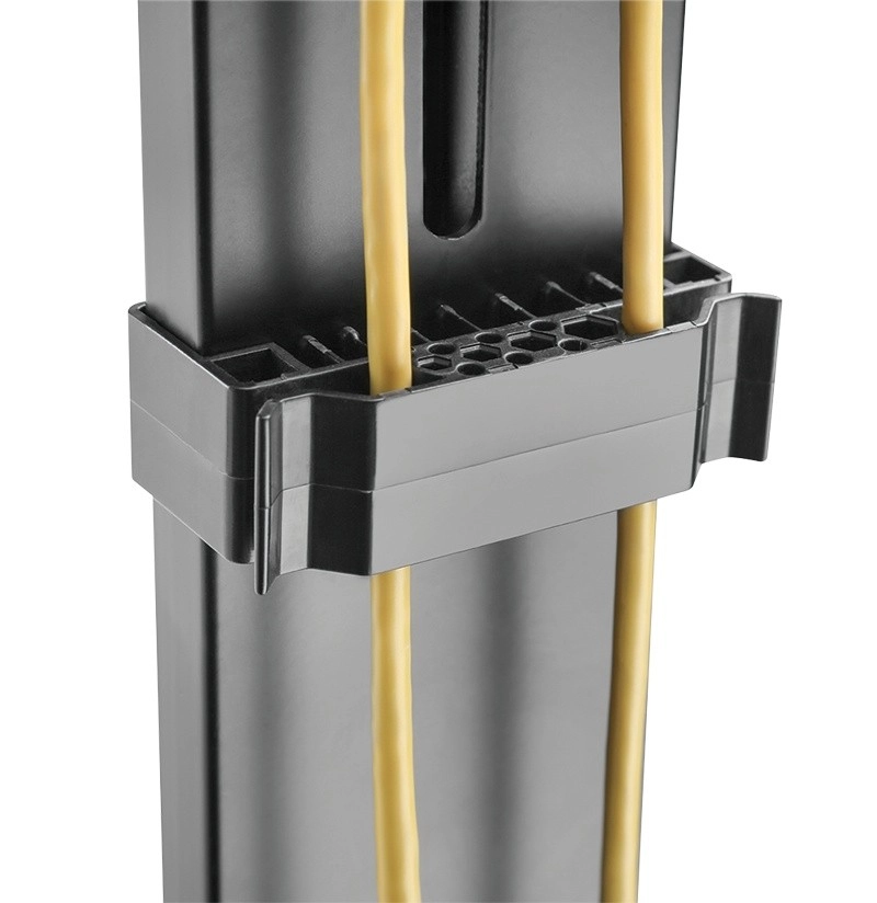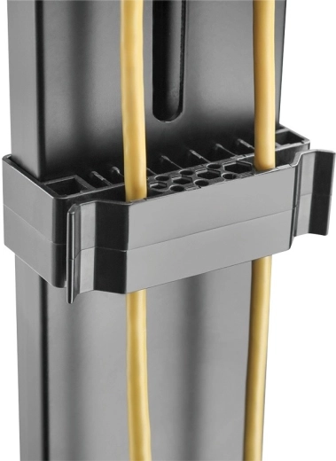 Zintegrowane klipsy prowadzą przewody wzdłuż ramienia, dzięki czemu powierzchnia robocza pozostaje czysta i przejrzysta.