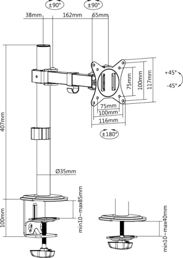 Przymocuj monitor bezpośrednio do biurka, zyskaj więcej przestrzeni i lepszą ergonomię. Ten solidny uchwyt ramieniowy z zaciskiem typu C oferuje płynną regulację wysokości wzdłuż słupa, wygodny zasięg i precyzyjny obrót ekranu. Dzięki zgodności z VESA łatwo zamontujesz większość popularnych monitorów 17–32".
