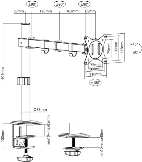 Ten biurkowy uchwyt solidnie przymocujesz do krawędzi blatu za pomocą zacisku, dzięki czemu natychmiast zwolnisz miejsce na biurku i zyskasz czyste, zorganizowane środowisko pracy. Dzięki w pełni ruchomemu ramieniu łatwo ustawisz wysokość, zasięg, pochylenie i obrót monitora dokładnie według swoich potrzeb.