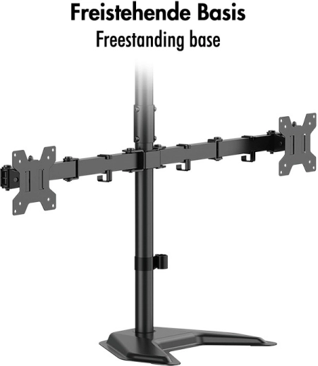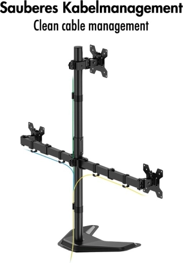 Zoptymalizuj swoje stanowisko pracy dzięki stojakowi na trzy monitory o przekątnych 17–32". Oferuje stabilną konstrukcję, regulację wysokości, nachylenia i obrotu oraz schowane prowadzenie kabli dla ergonomicznej i wydajnej pracy.