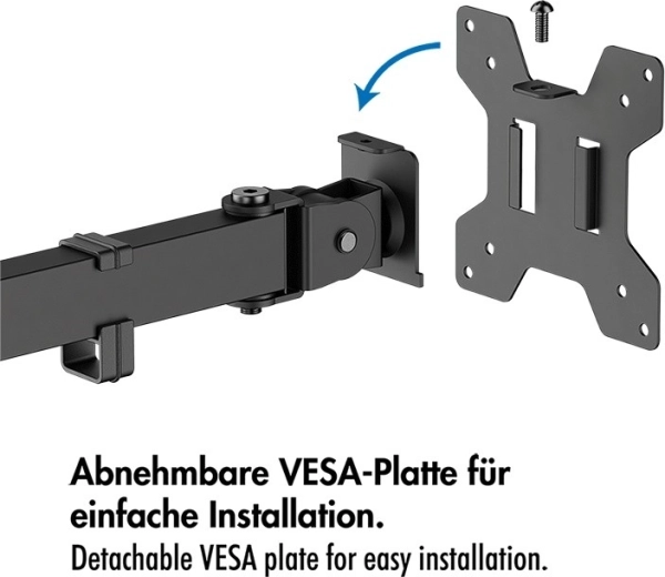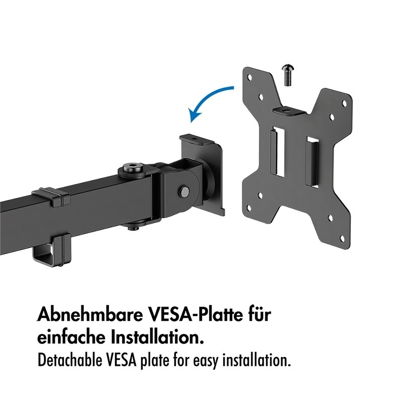 Szerokie ramię z uchwytami VESA umożliwia ustawienie trzech ekranów obok siebie i czwartego nad nimi. Idealne do multitaskingu i przejrzystego workflow.