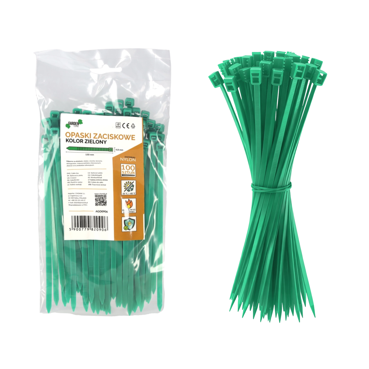 W opakowaniu znajduje się 100 sztuk, co wystarcza do szybkiego montażu dłuższych odcinków oraz do uzupełnienia istniejących mocowań. Opaski są łatwe w aplikacji, trzymają kształt i zapewniają stabilne oraz bezpieczne mocowanie nawet przy wietrze i deszczu.