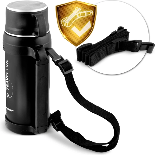 Przemyślane detale sprawiają, że ten termos to świetny towarzysz na co dzień: wkręcany korek zamienia się w wygodny kubek, blokada pokrywki zapobiega przypadkowemu otwarciu, a solidny uchwyt z regulacją prześwitu ułatwia przenoszenie i mocowanie do plecaka. W zestawie znajduje się także odpinany pasek na ramię dla maksymalnej wygody.
